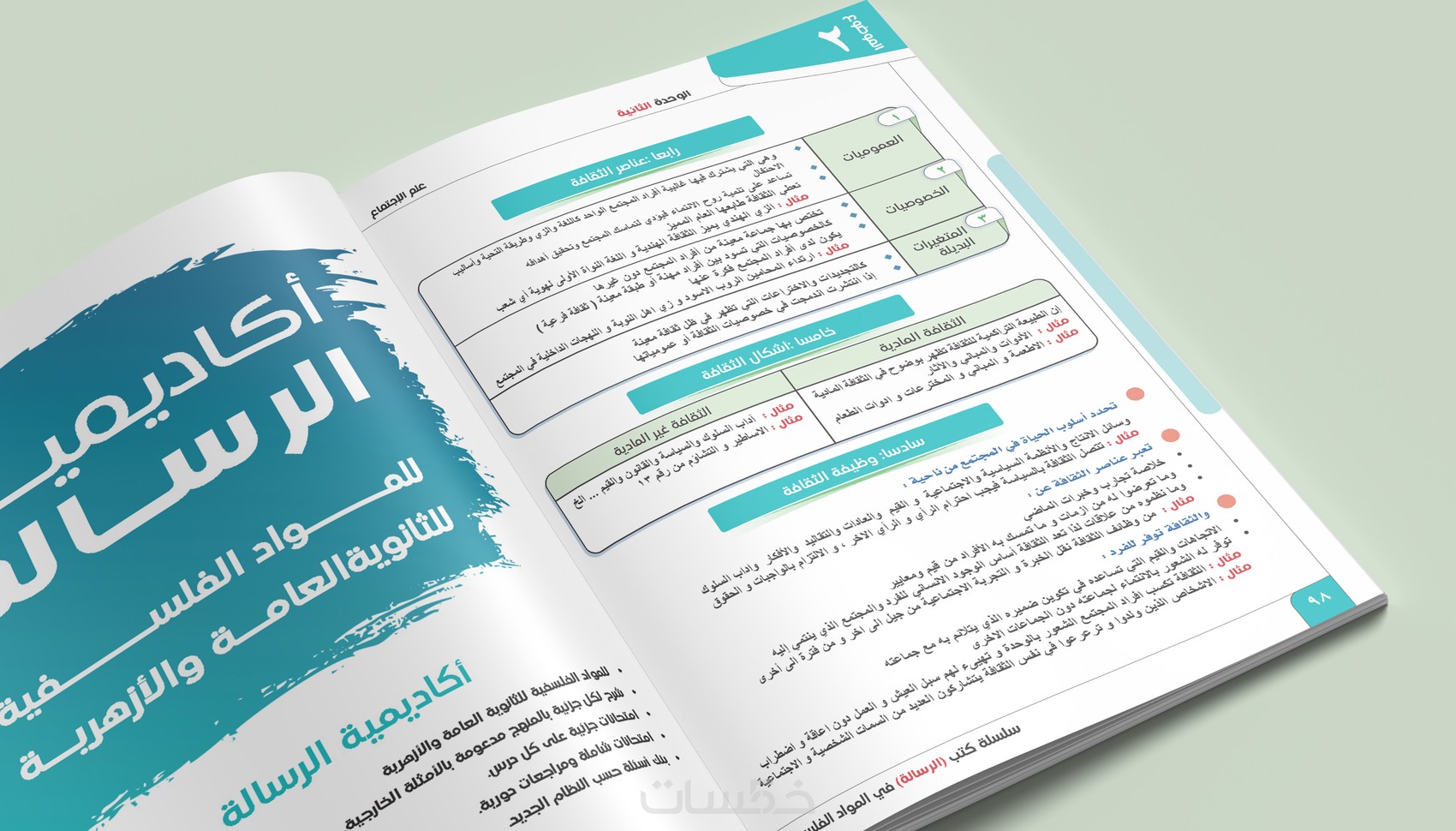 -تصميم لبداية كل باب وتصميم لبداية كل درس وتصميم لاسألة كل فصل وكل باب.