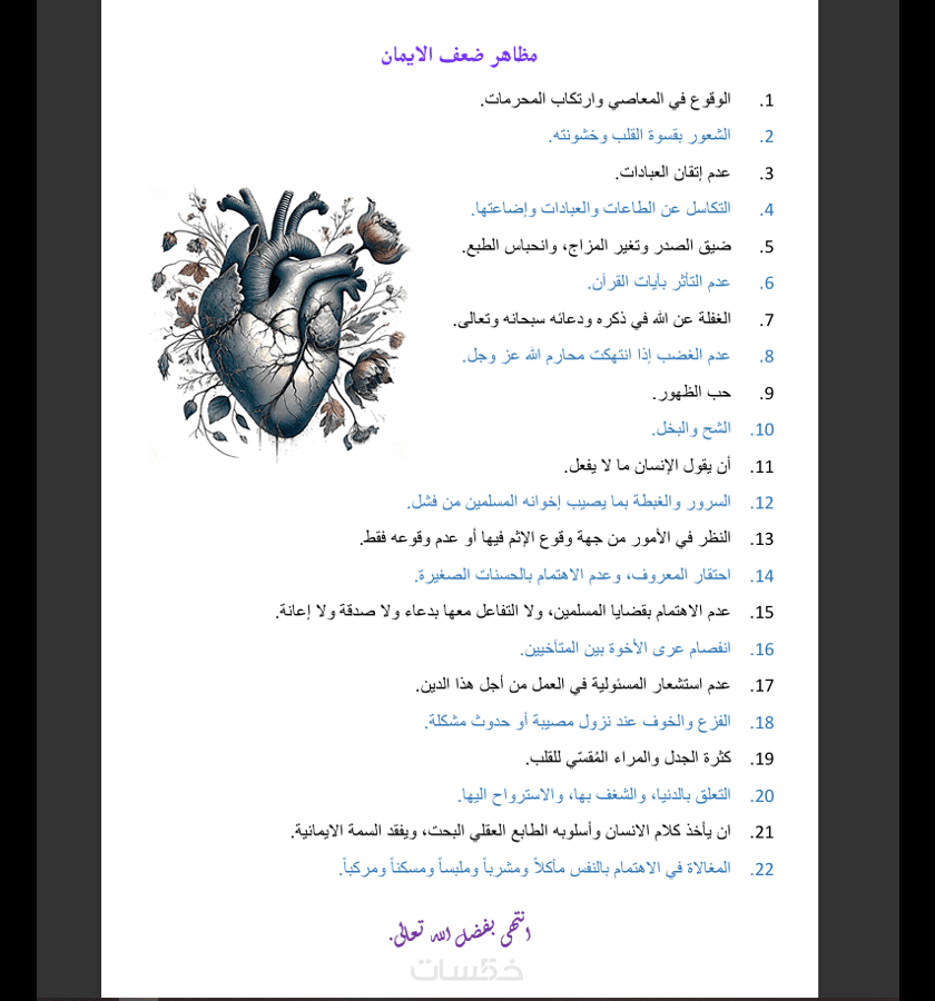 يتم تمييز العناوين وتنسيق الفقرات بشكل يسهل القراءة ويُظهر هيكل النص بوضوح.
