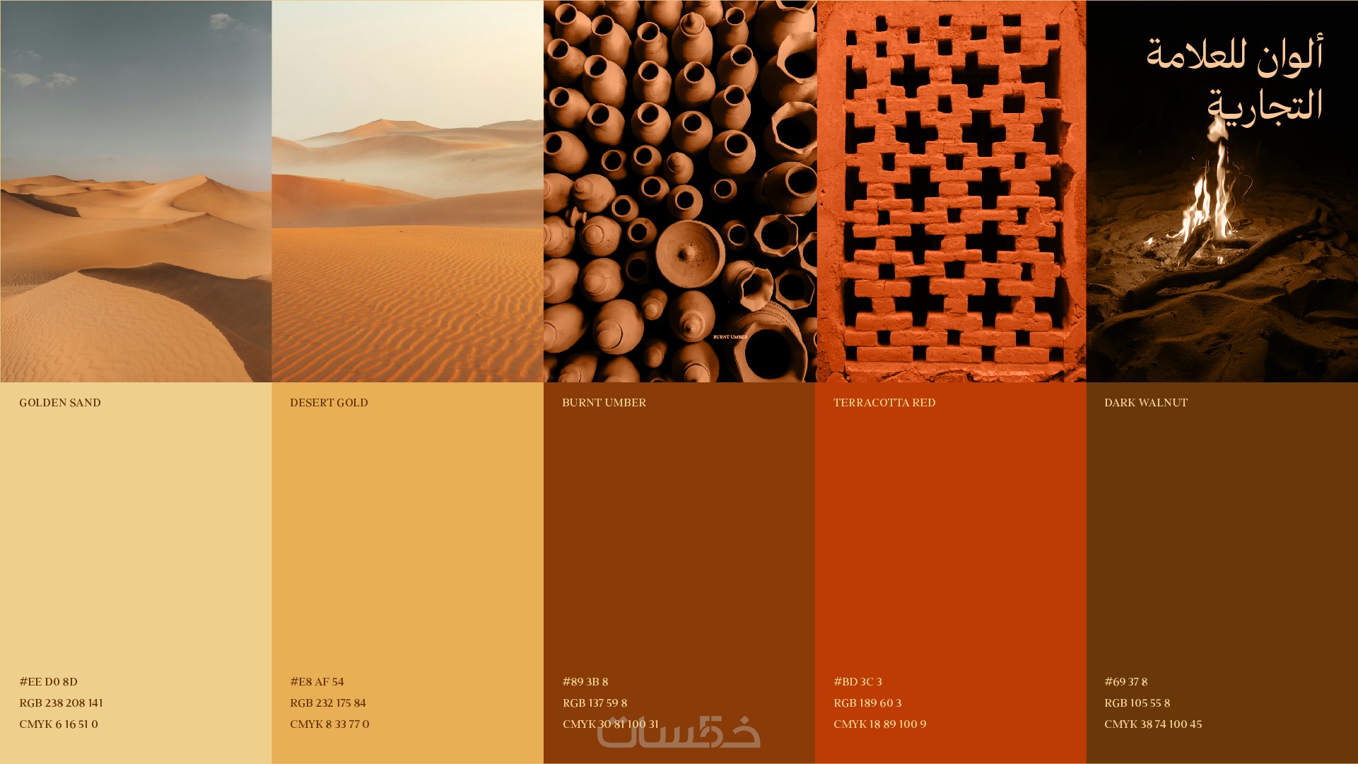 ويفضل أن تضم ثلاثة ألوان أساسية مضافًا إليها بعض الألوان المحايدة. ناقش المصمم في اختيار لوحة الألوان المناسبة لهوية علامتك التجارية وحاول اعتماد البساطة أثناء اختيارك، وتأكد من حصولك على دليل لوحة الألوان في نهاية مشروعك مع المصمم، لتستخدمها في جميع منتجاتك وقنواتك التسويقية لاحقًا.
