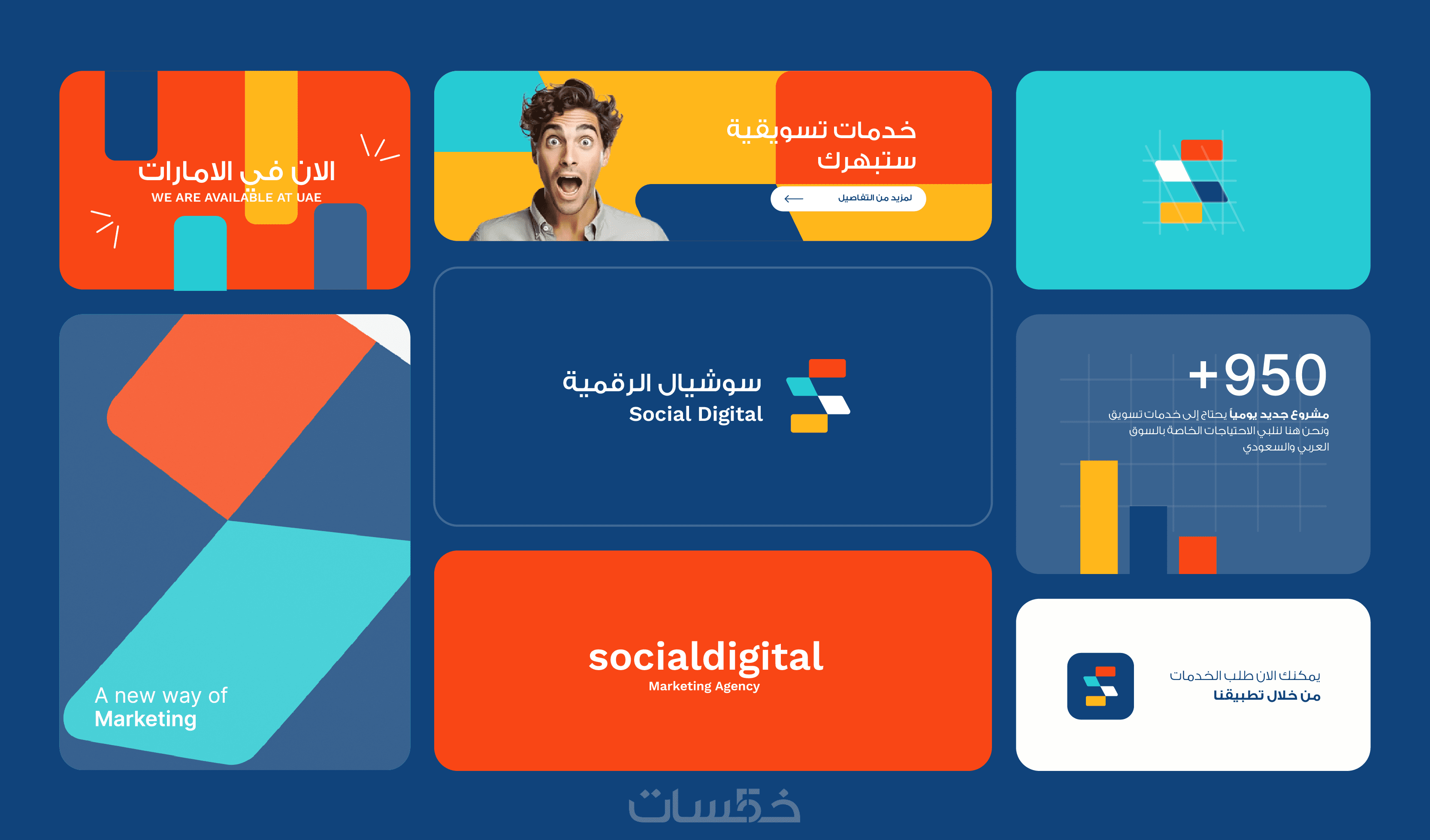 - تصميم العناصر المكملة للهوية مثل المطبوعات وتصاميم الديجيتال