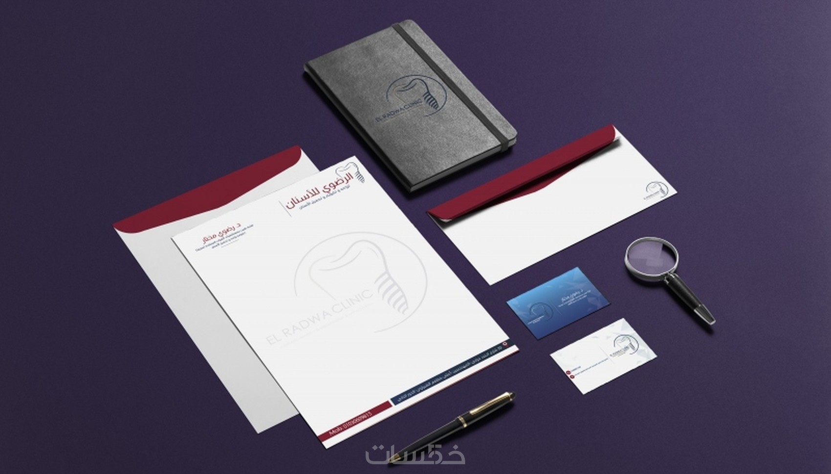 هويه بصريه كامله (بزنس كارد وجهين - فولدر-ظرف مراسلات - لترهيد - ختم