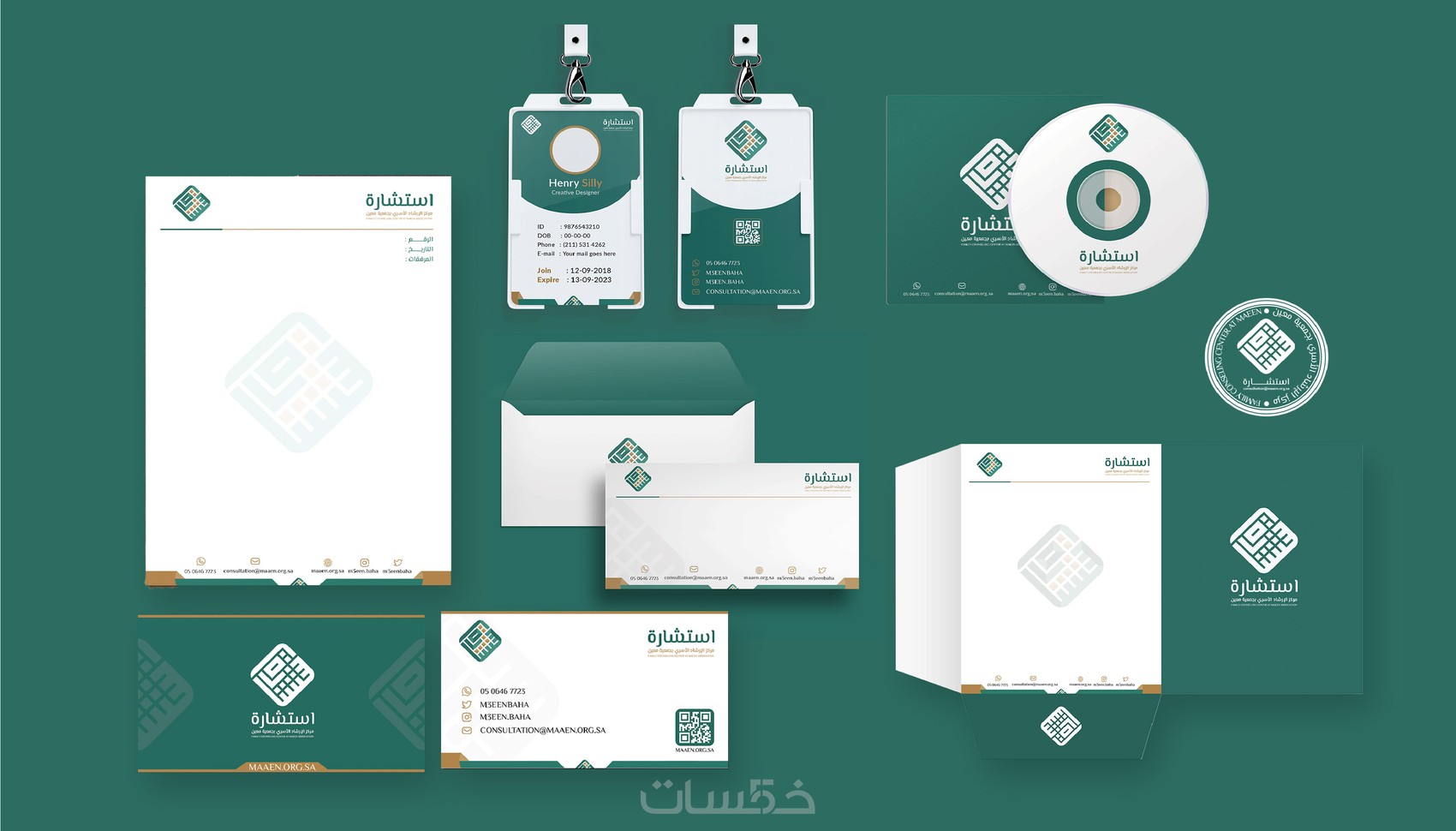 *عند طلب الخدمة مره واحده ستحصل على تصميم 5 عناصر من عناصر الهوية البصريه الموضحة اسفل :