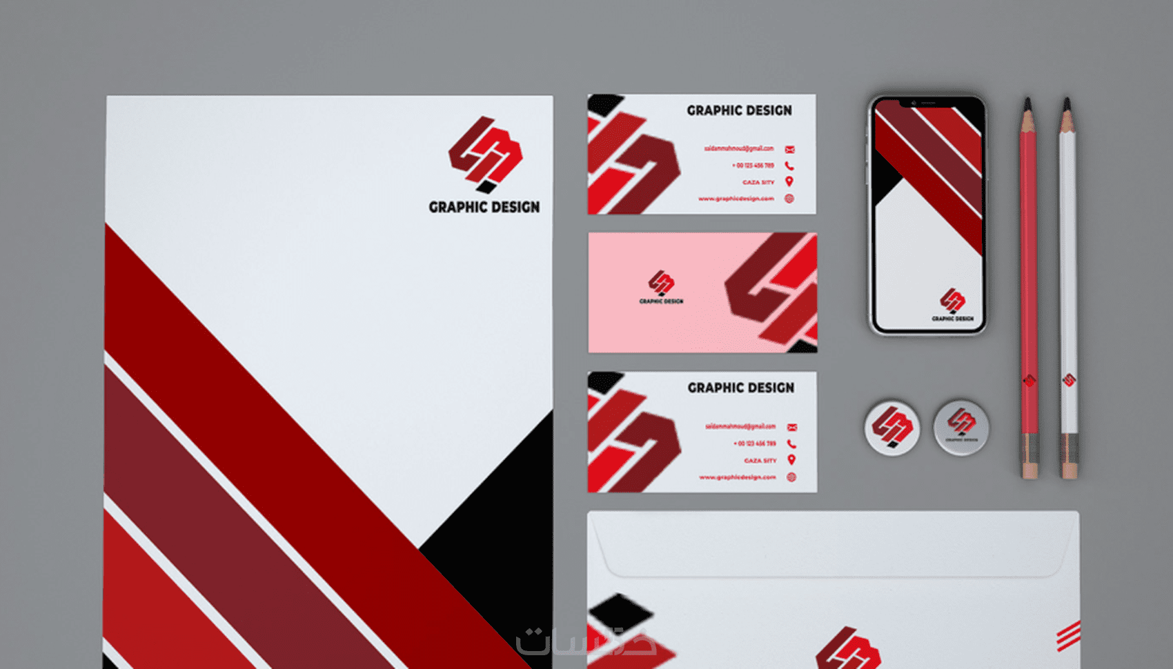 لا تتردد بشراء خدمة تصميم هوية بصرية كاملة ( بزنس كارد , ورقة مراسلات , مظروف , قلم) بشكل احترافي مبتكر الآن