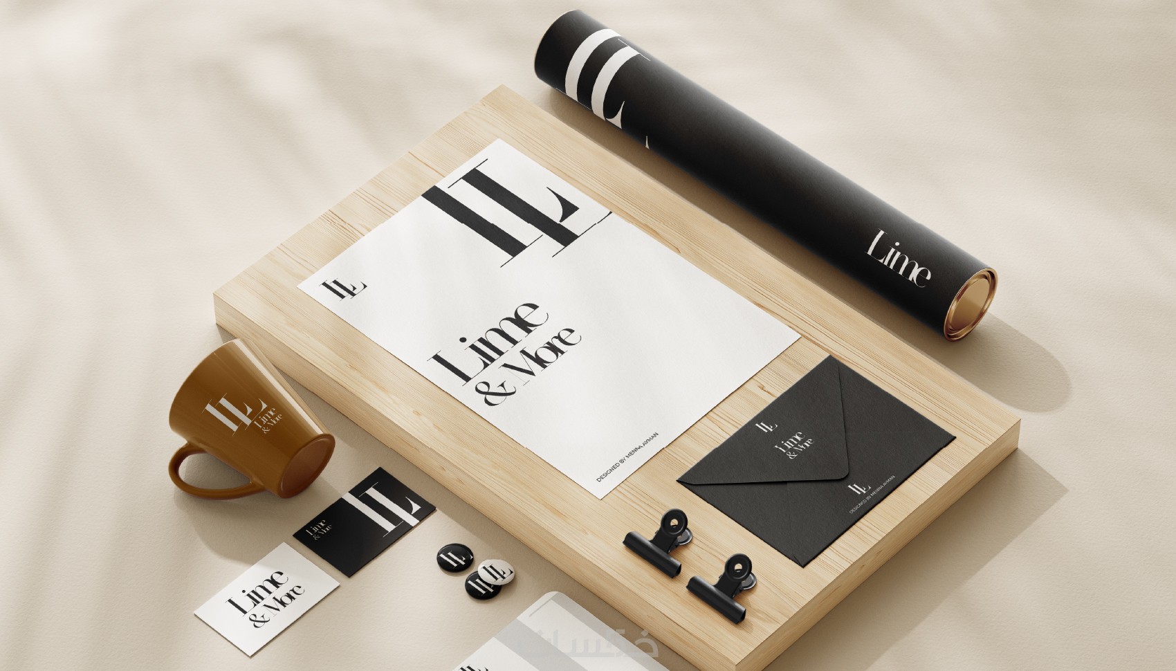 عرض بصري للهوية مع مطبوعات أساسية فقط