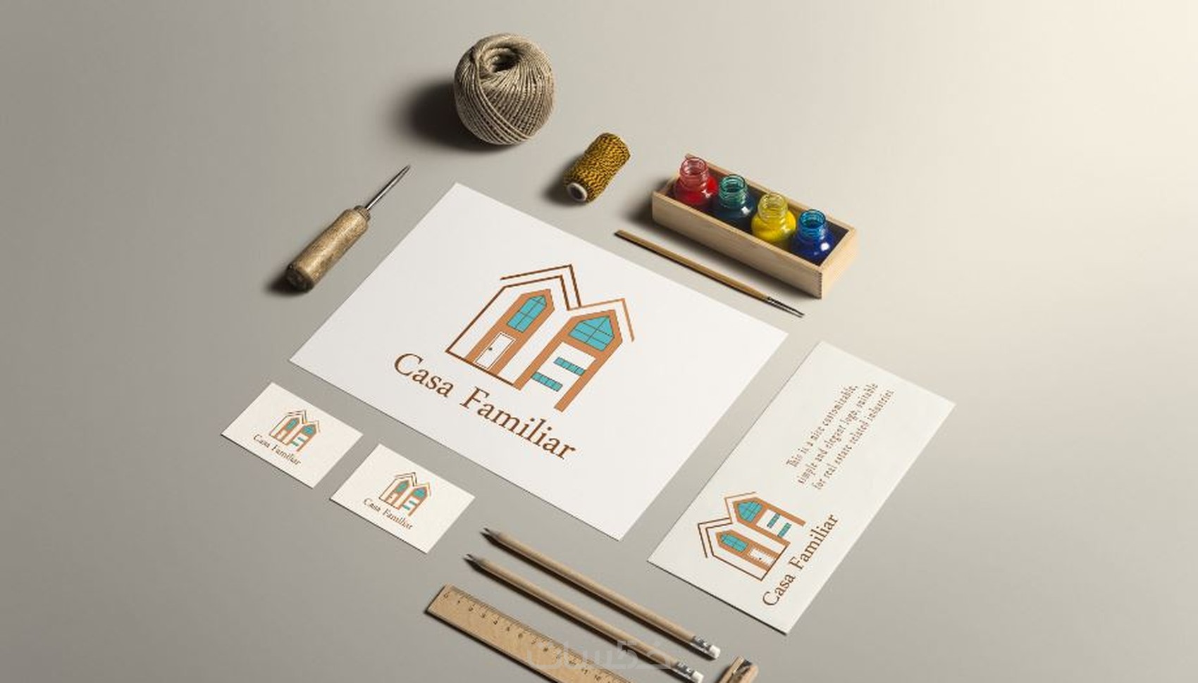 تصميم شعار مع اربعة عناصر هوية بصرية