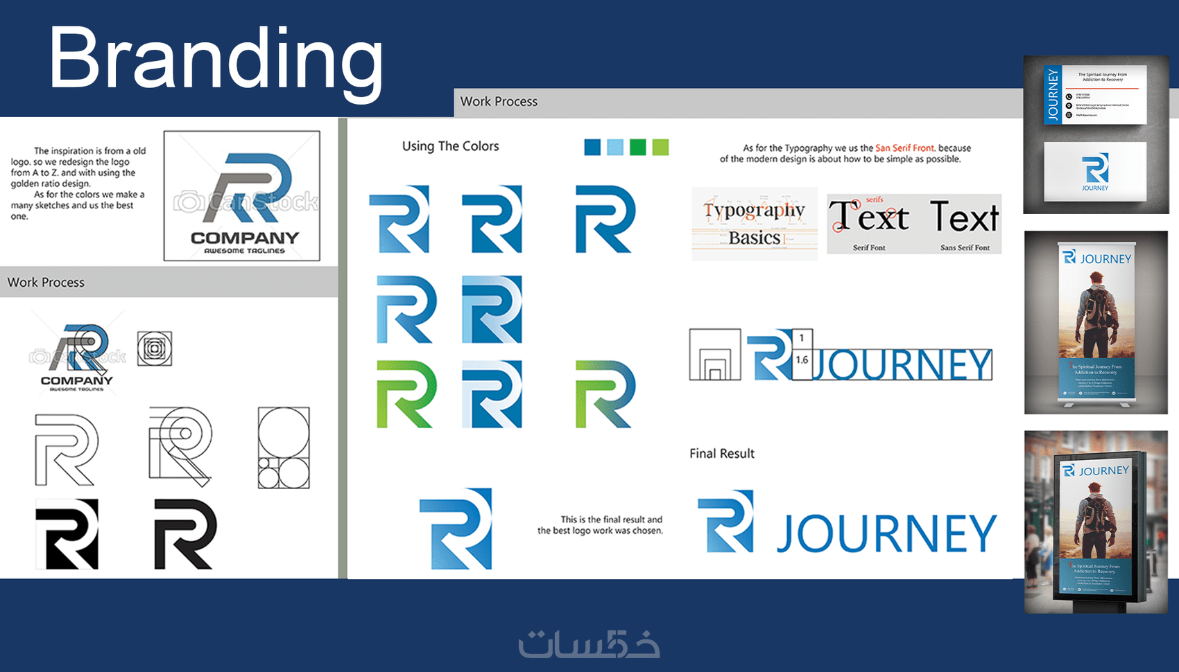 4- إضافة عنصرين مع الشعار حسب رغبة العميل. مثل (بطاقة أعمال - ورق مراسلات - بوستر أو غلاف سوشيال ميديا... )