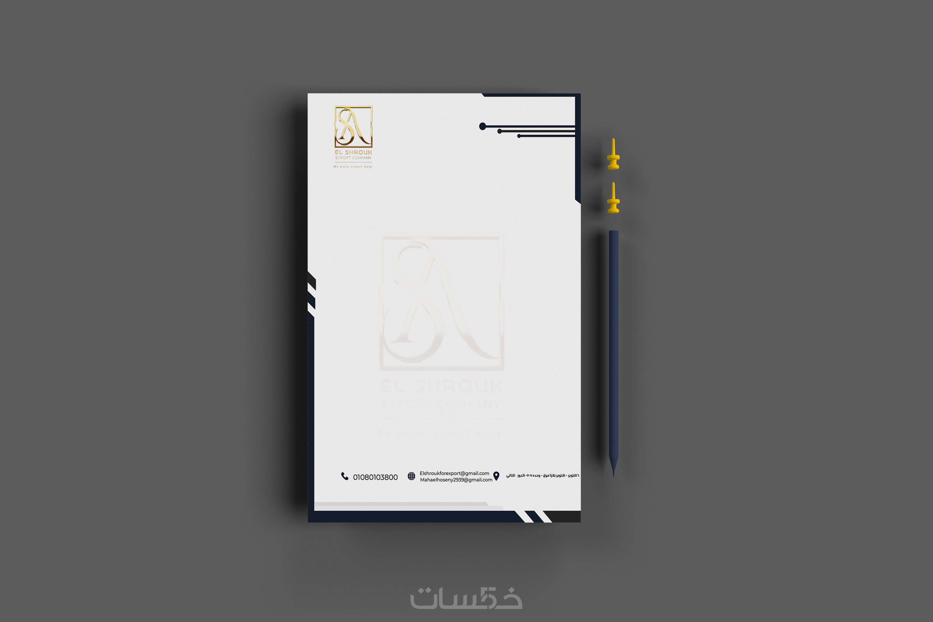5- الهويه البصريه التي اقدمها عباره عن كرت و ليترهيد و ظرف