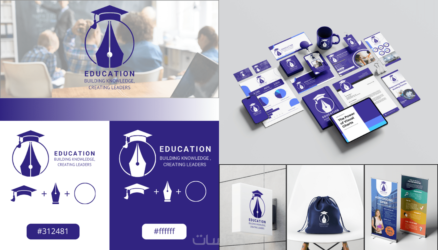 • ملف شامل يعرض (طريقة تصميم الشعار، الأكواد اللونية، الباترن الخاص بالشعار، الخطوط المستخدمة وكيفية تطبيقها).