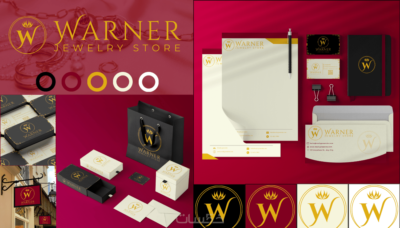 • ستتحصل على نموذج واحد من كل عنصر من عناصر الهوية البصرية ، ماعدا الشعار ستتحصل على نموذجين