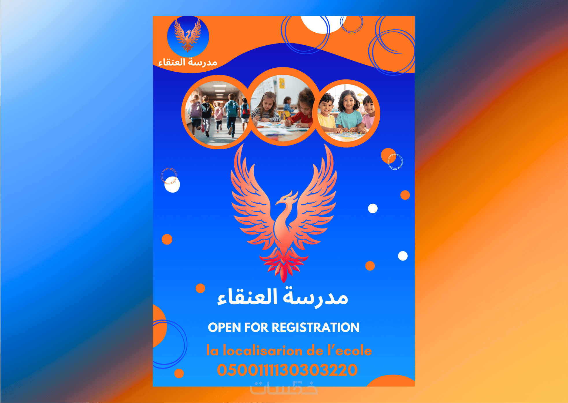 (شعار/بزنس كارد / فلاير /بانر خارجي/ فاتورة للتلميذ(ة)/ أوراق احترافية).