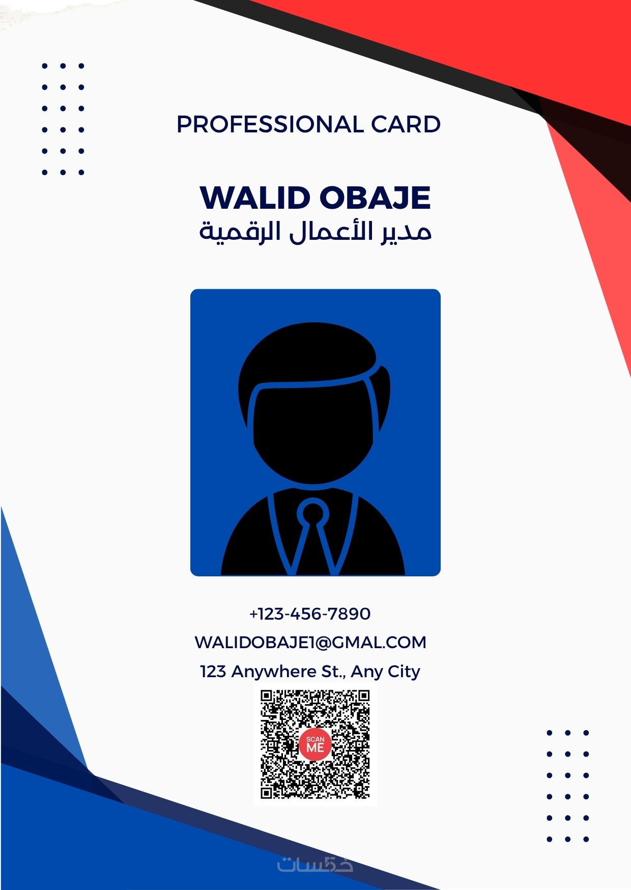 بطاقة عمل (Business Card) جاهزة للطباعة والاستخدام الرقمي