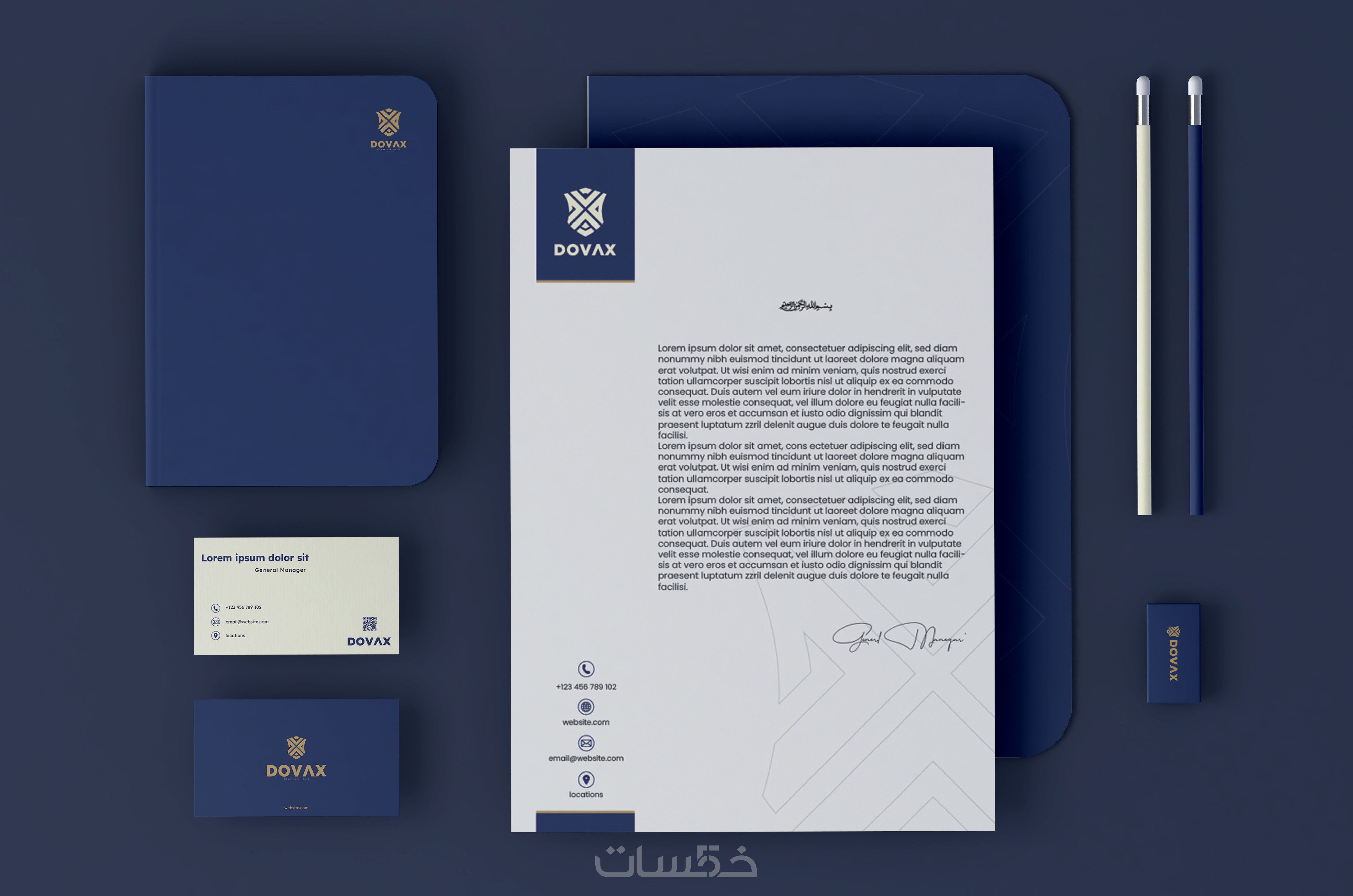 الباقة الأساسية تشمل تصميم 3 عناصر من عناصر الهوية البصرية التالية: