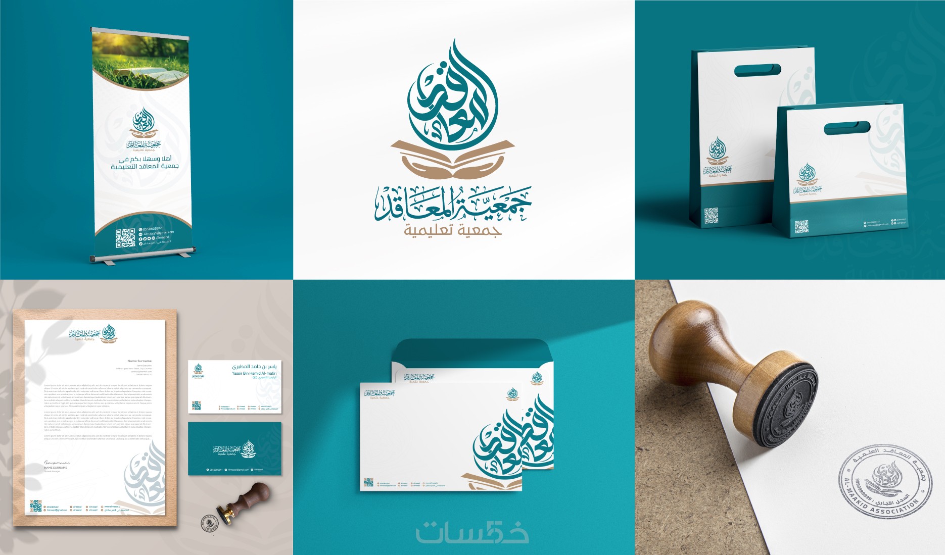 الهوية الكاملة: الشعار(6ع)+الألون+الخطوط+الباتن+الوثائق الادارية(14ع) +تطبيقات الهوية البصرية(16ع)