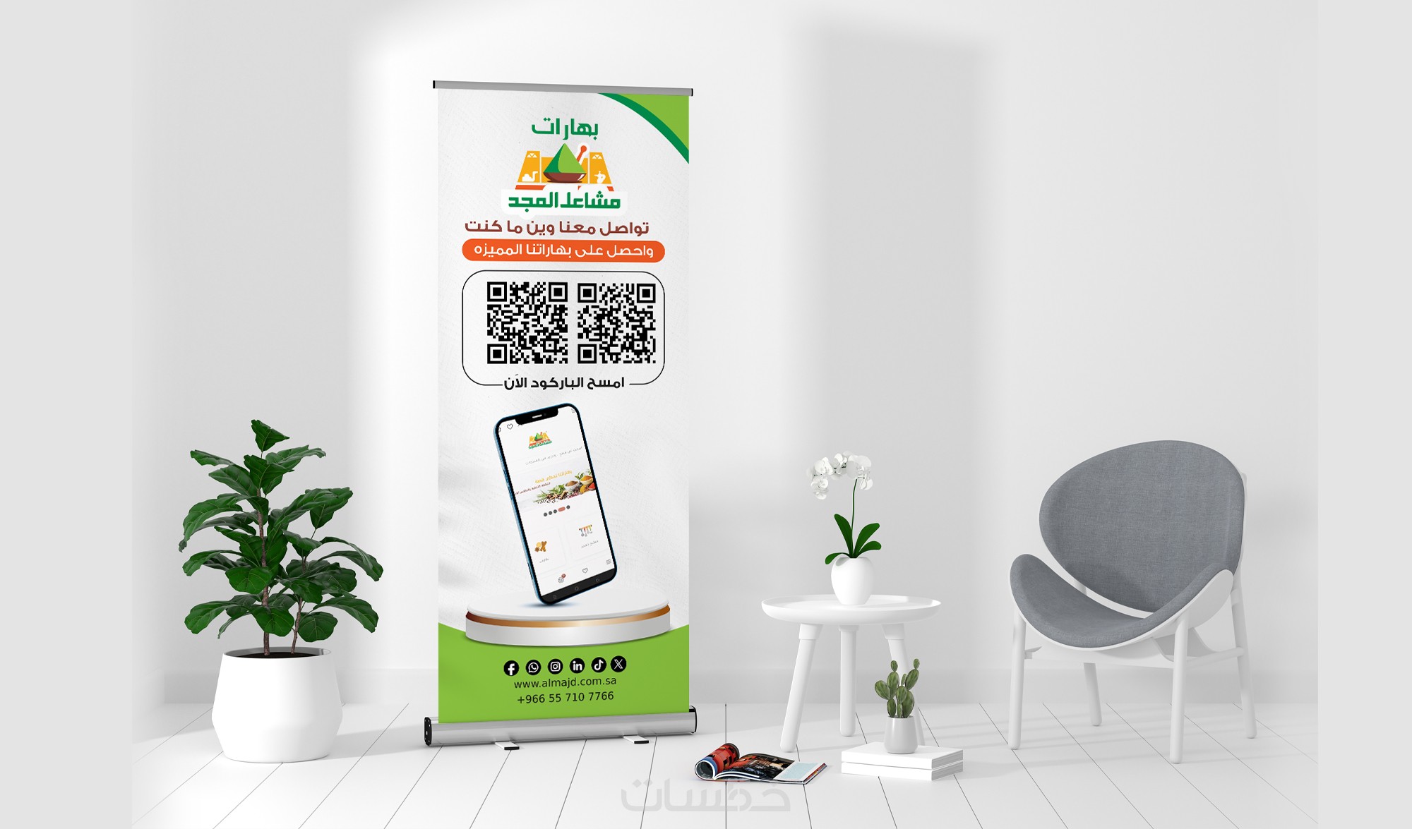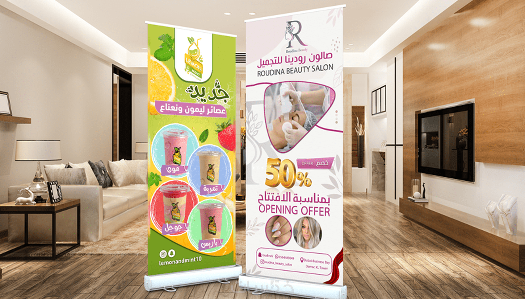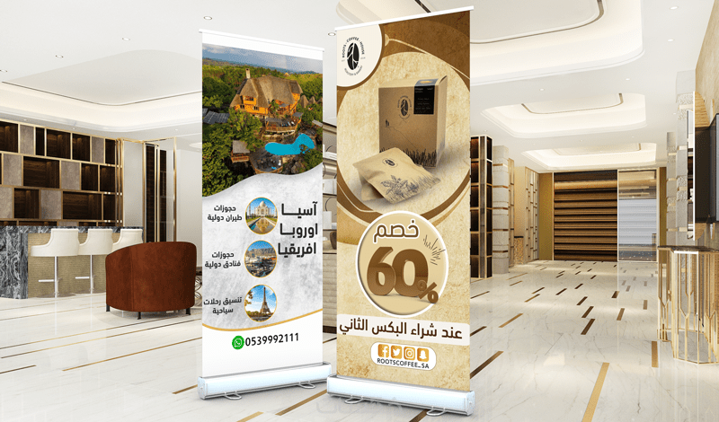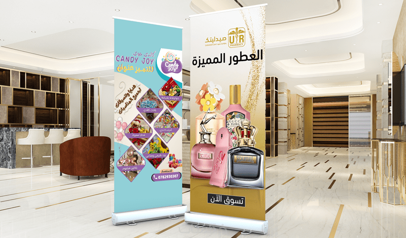 تصميم احترافي للرول أب الخاص بشركتك بنفس الهوية البصرية الخاصة بها. بما يضمن تعزيز الهوية ورسوخها في أذهان الزوار وترك انطباع الشعار ذاته لتكون صاحب حضور قوي في كل الأحداث .. حيث اني لدي مايزيد عن ال ٦ سنوات في تصميم الشعارات و الهوية الكامله للشركات