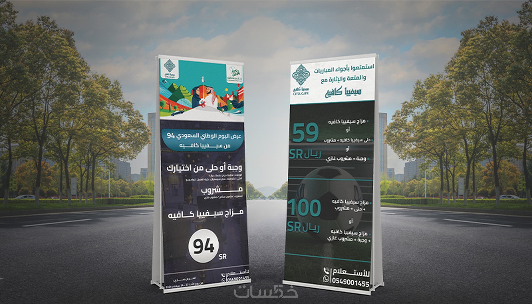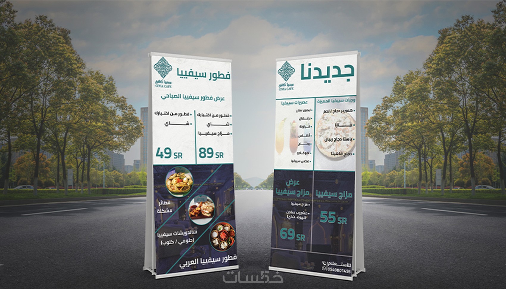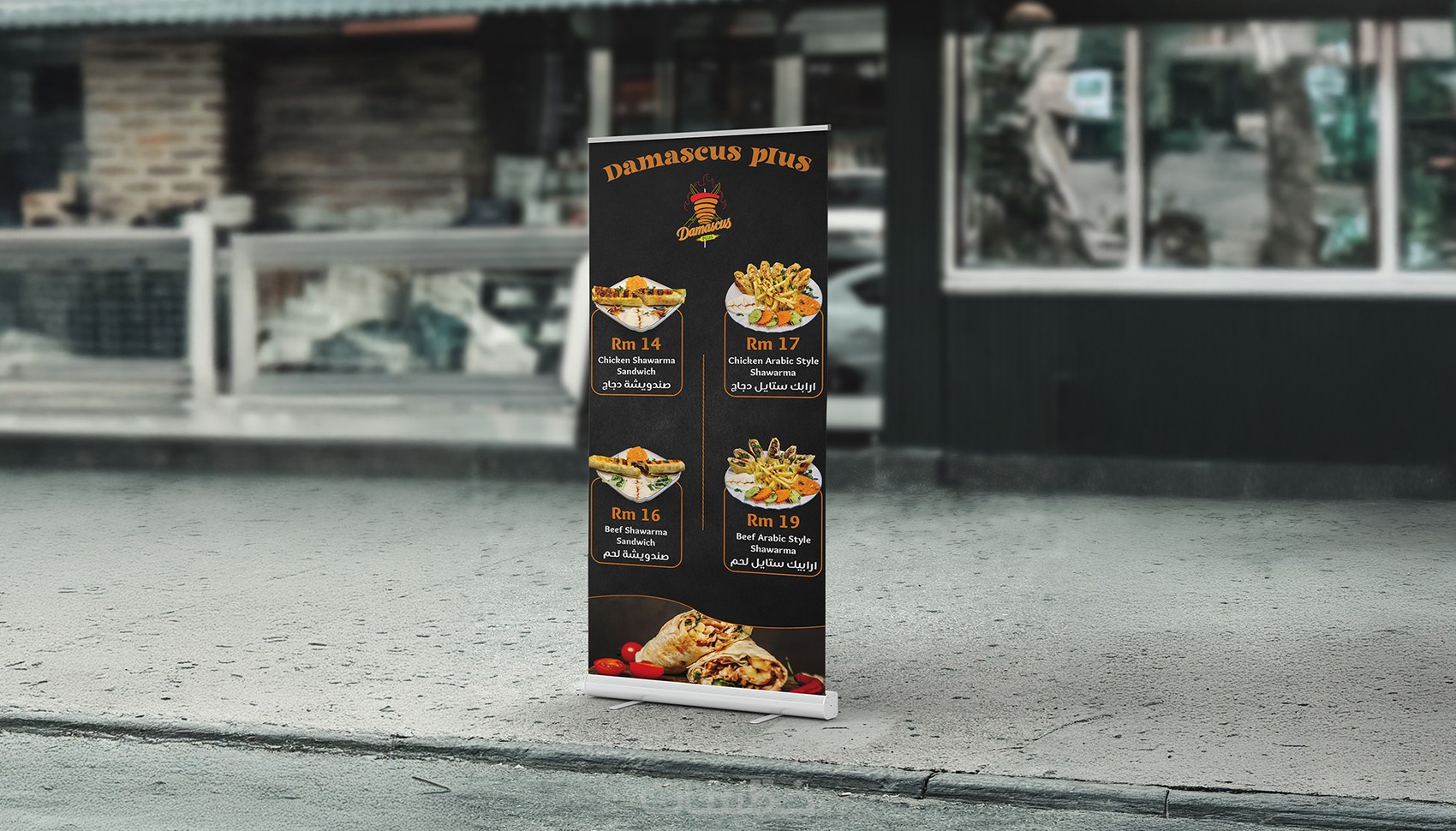 ان كنت تريد تصميم ستاند رول اب لمطعمك او شركتك بطريقة احترافية فأنت في الخدمة الصحيحة.