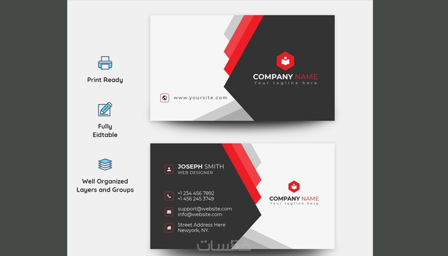 1- كل القوالب جاهزة للتعديل بدون اي تعب او خبرة فقط افتح التصميم و ادخل بياناتك و تمتع بشكل تصميمك .
