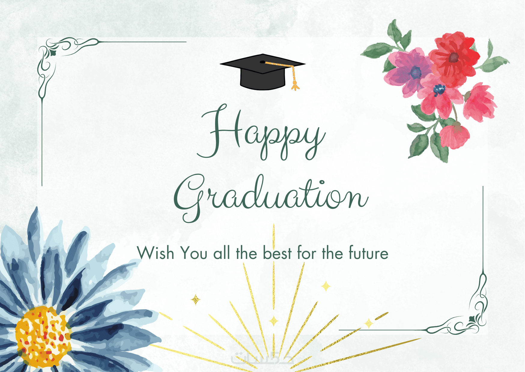 أقدم لك بطاقة تخرج جاهزة بدون اسم، بتصميم جميل وعصري، يمكنك استخدامها فورًا لتهنئة أي خريج أو خريجة
