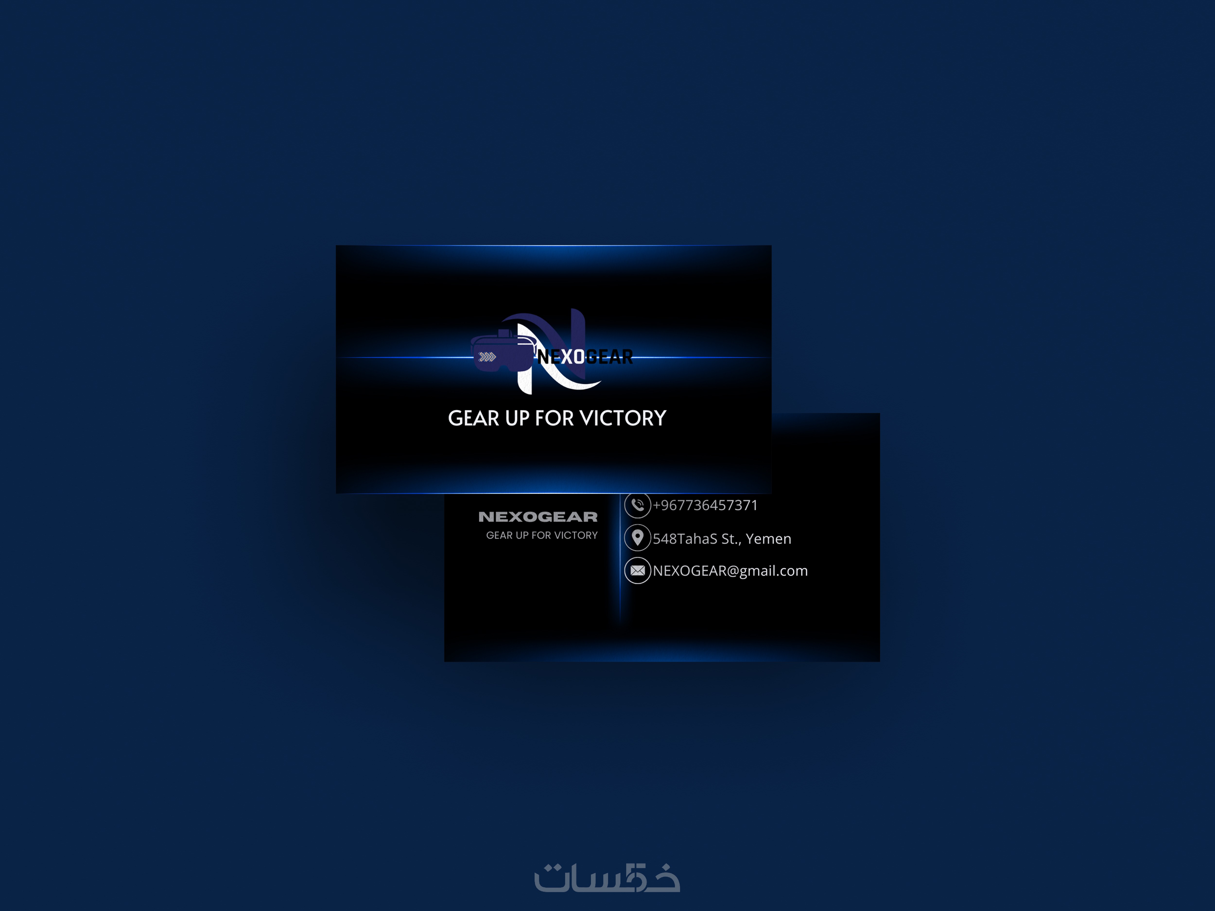 تصميم متكامل يعرض الواجهتين لبطاقة العمل بشكل احترافي.