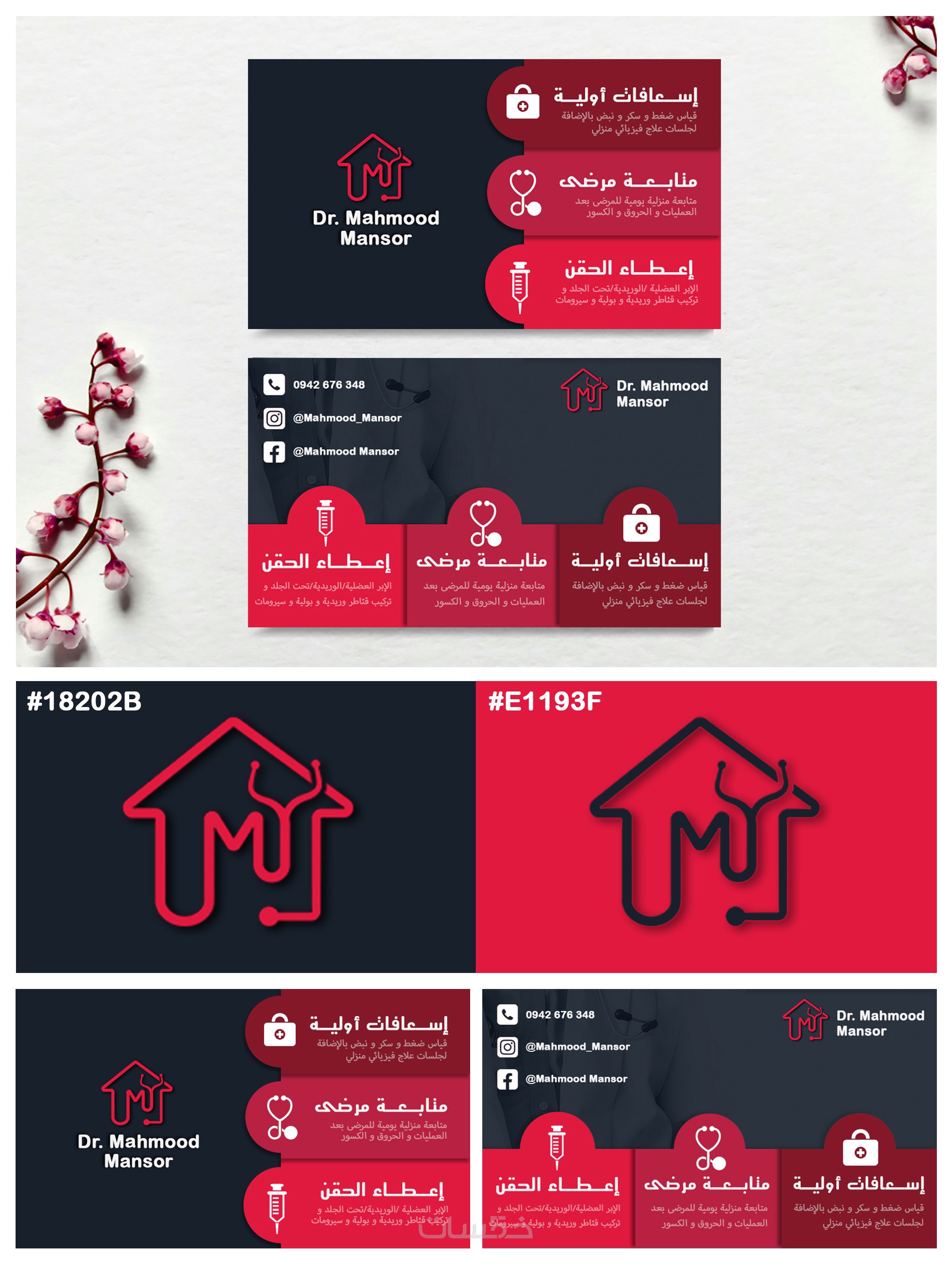 تقديم تصميمين مختلفين لتختار الأنسب لهويتك ومجال عملك.