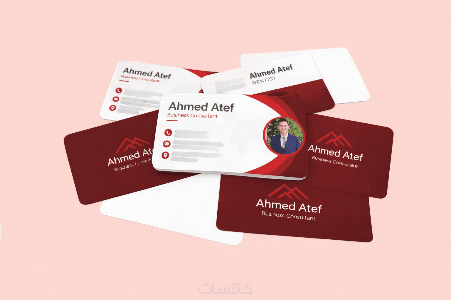 التصميم يتم وفق المقاسات القياسية المعتمدة لبطاقات الأعمال وبجودة مناسبة للطباعة دون تشويه.