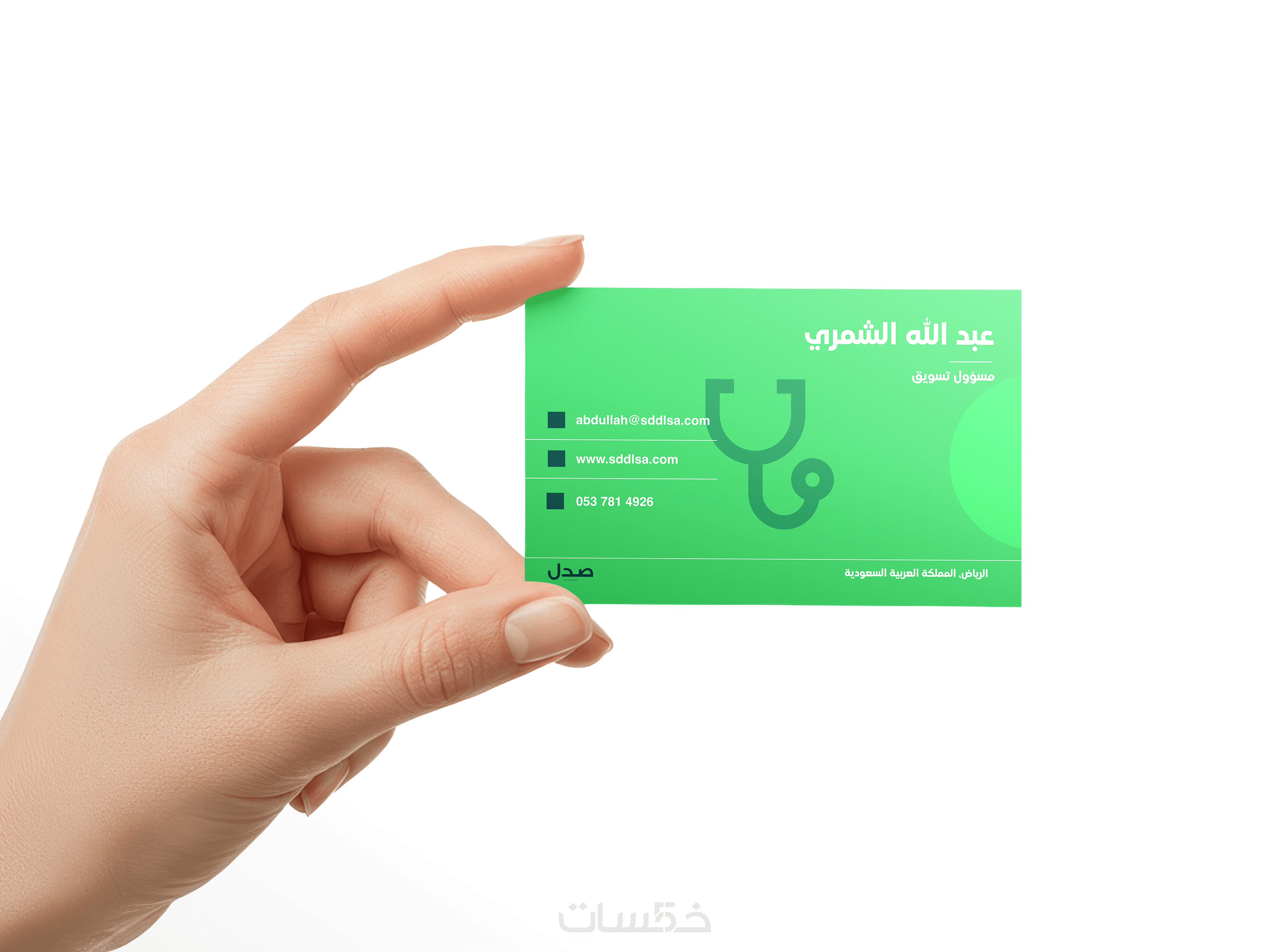 - عرض البطاقة على موك أب واقعي يبرز جمال التفاصيل قبل الطباعة.