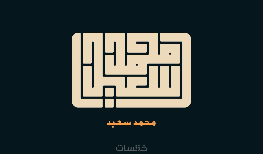 أنا دكتور محمد سعيد ومن خلال دراستي للخط الكوفي المربع سأقدم لك تصميما لاسمك، أو شعارا مميزا وجذابا لمؤسستك، أو خدمتك، أو مشروعك، أو أي جملة تريدها بالخط الكوفي المميز بشكله الهندسي.