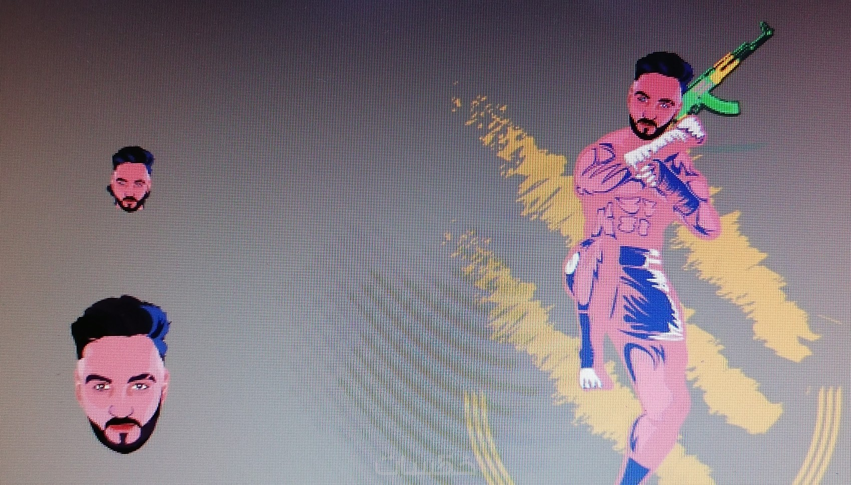رسم فيكتور بمعنى أن دقته وجودته عالية جدا لا تتأثر مهما كبرت الحجم وايضا تقسيم الصورة الى ليرات لاغراض تحريك الشخصية والمونتاج يمكن طلبها من الاضافات