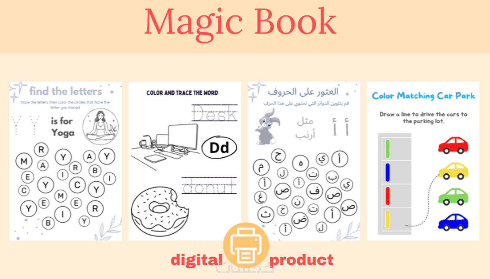 يمكنني أن أصمم لك كتب أطفال ذات محتوى متنوع من إختيارك (تلوين،حروف،رسم،ارقام....) و في فترة وجيزة