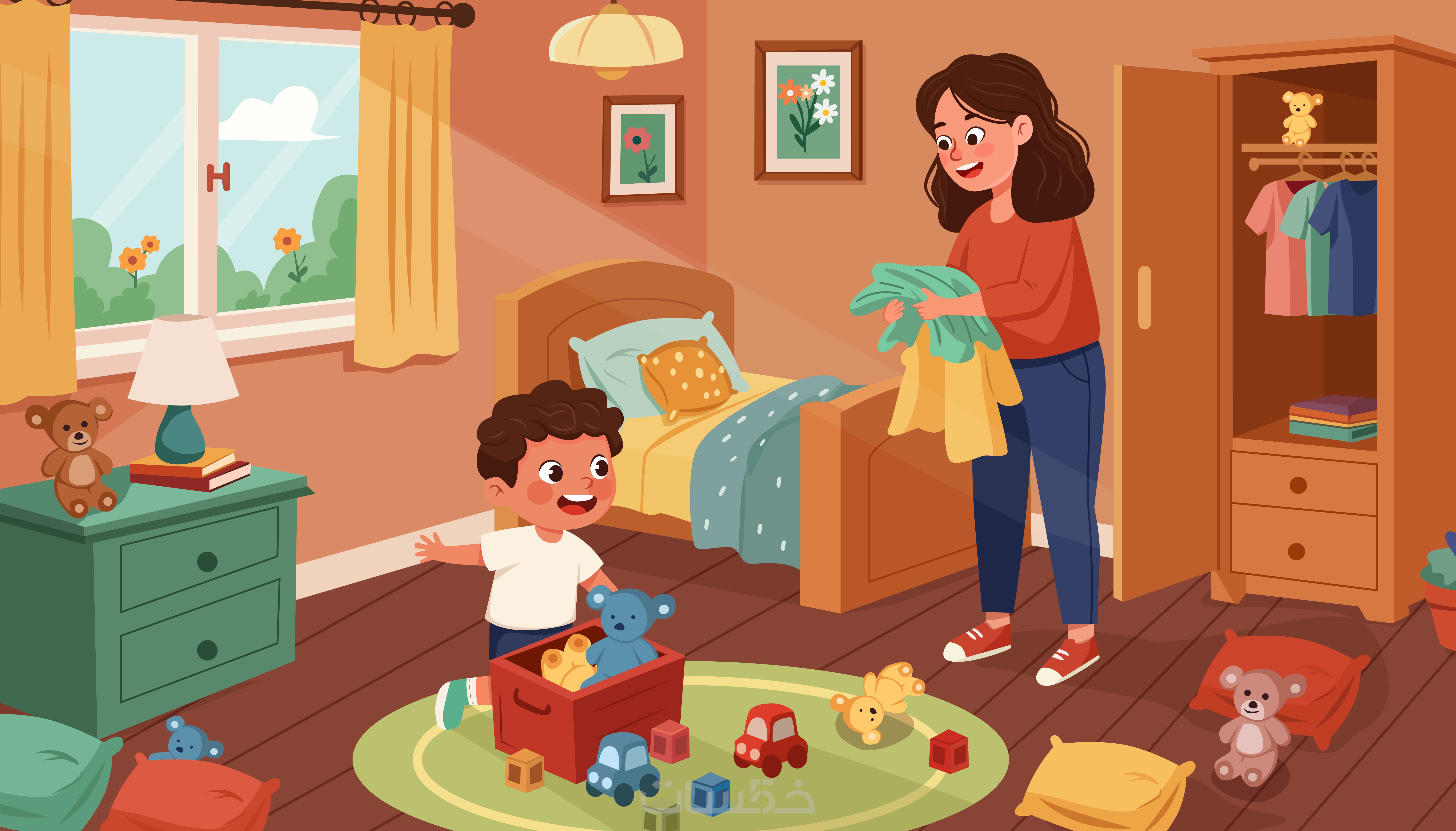 ألوان طفولية مبهجة وأسلوب فني بسيط يناسب الأطفال.