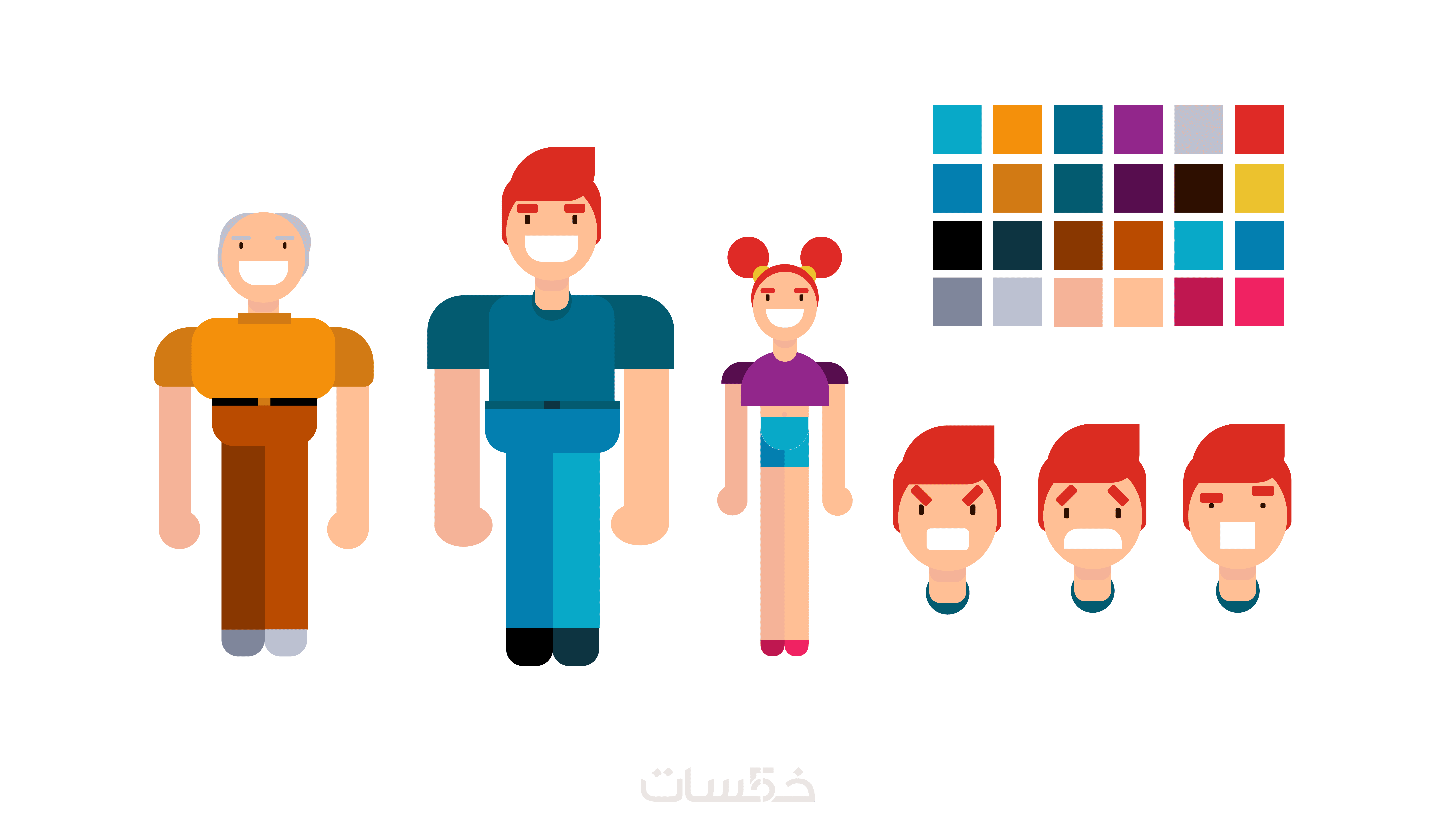 سأقوم برسم شخصيات وخلفيات بأسلوب بسيط وجذاب (Flat Vector) باستخدام برنامج Adobe Illustrator، مناسبة لاستخدامها في الفيديوهات التوضيحية، الموشن جرافيك، العروض، أو المواقع الإلكترونية.