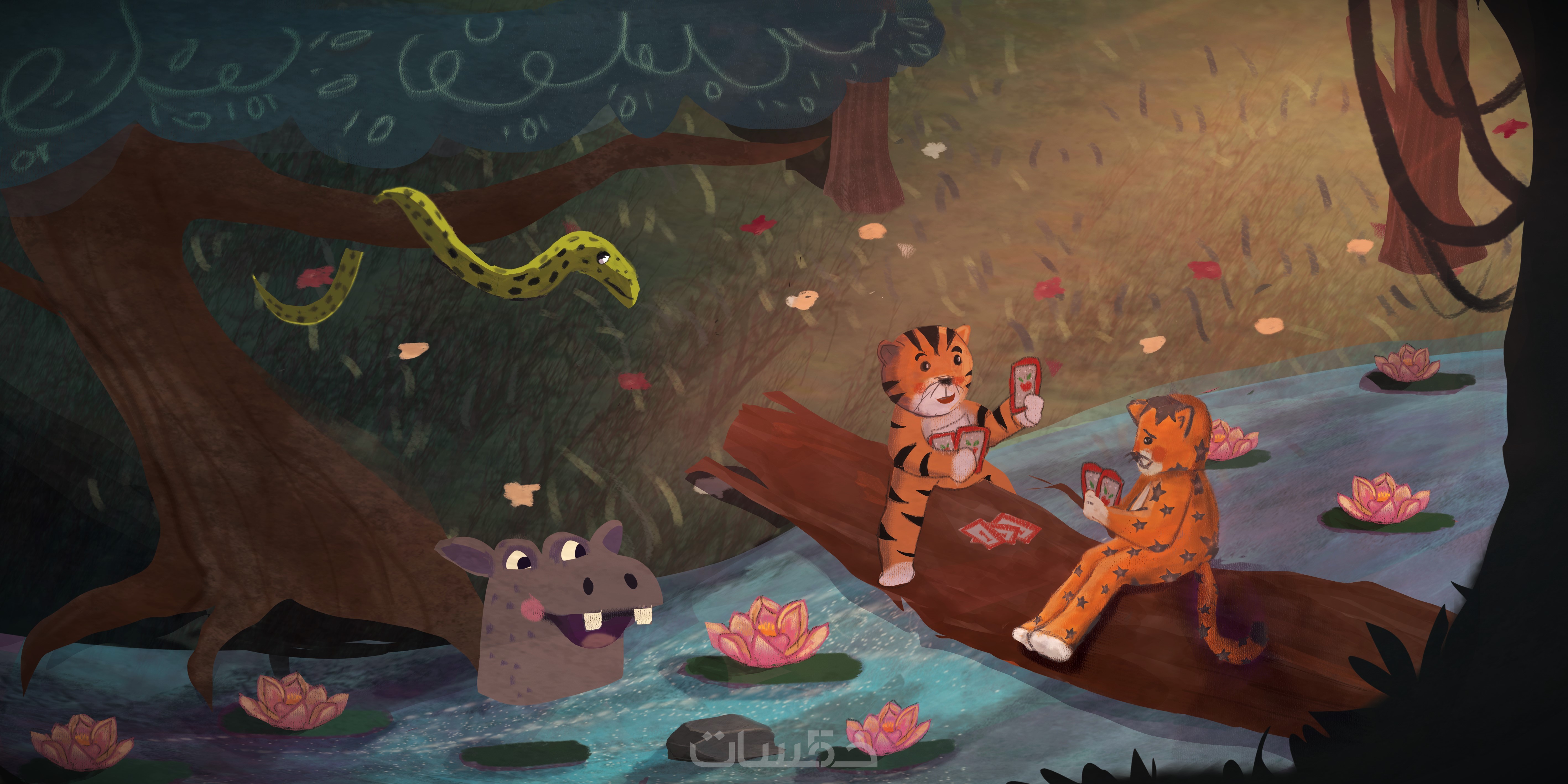 تحديد مكان أو بيئة المشهد (غابة، منزل، مدرسة، حديقة… إلخ).