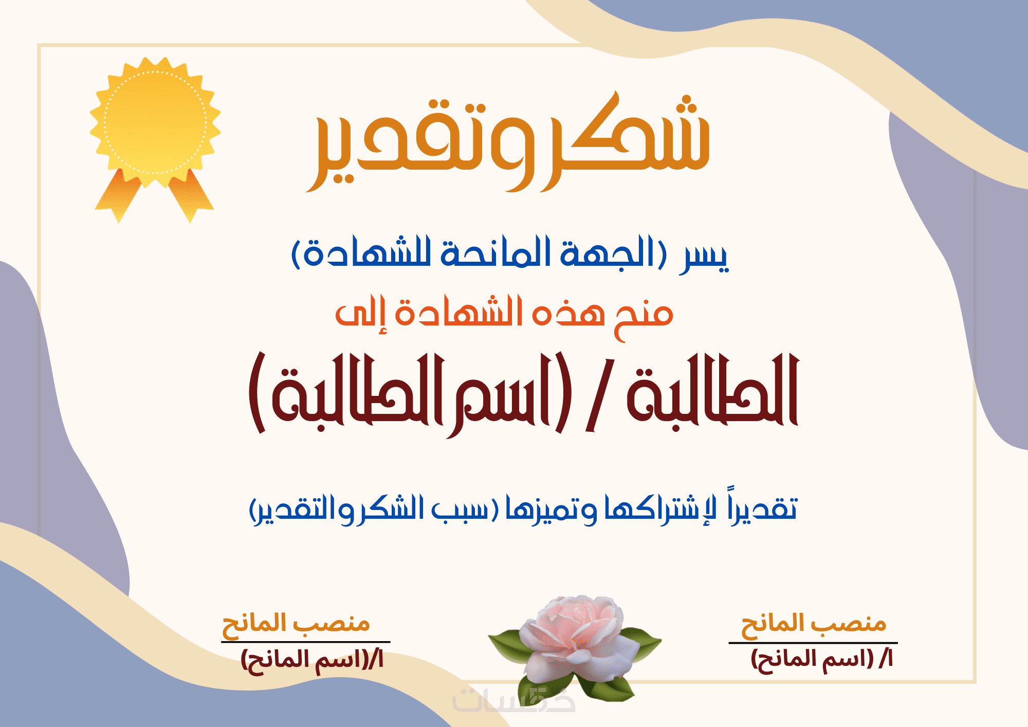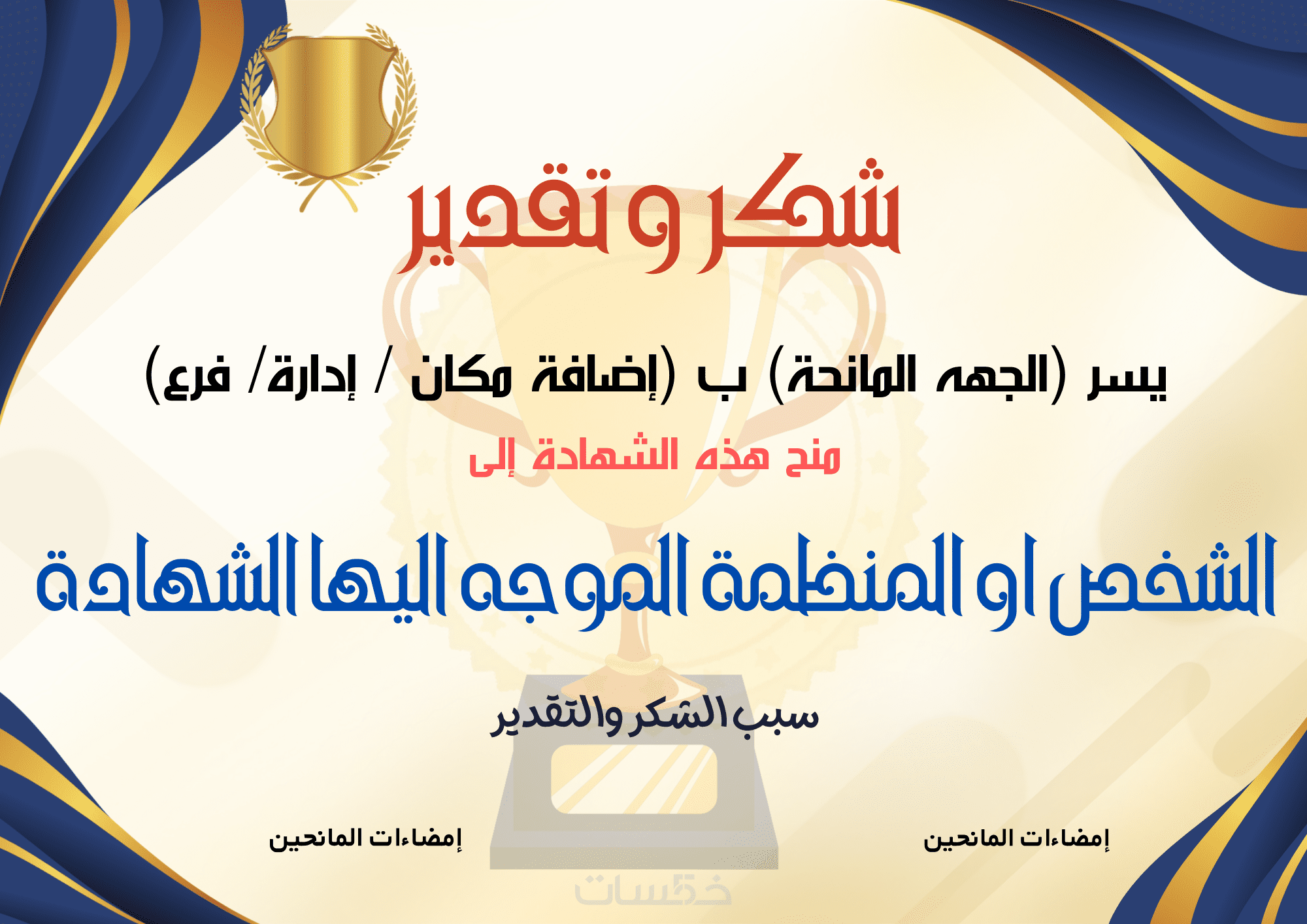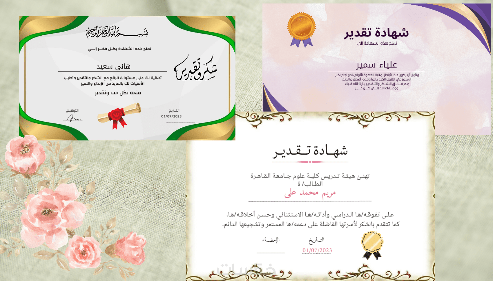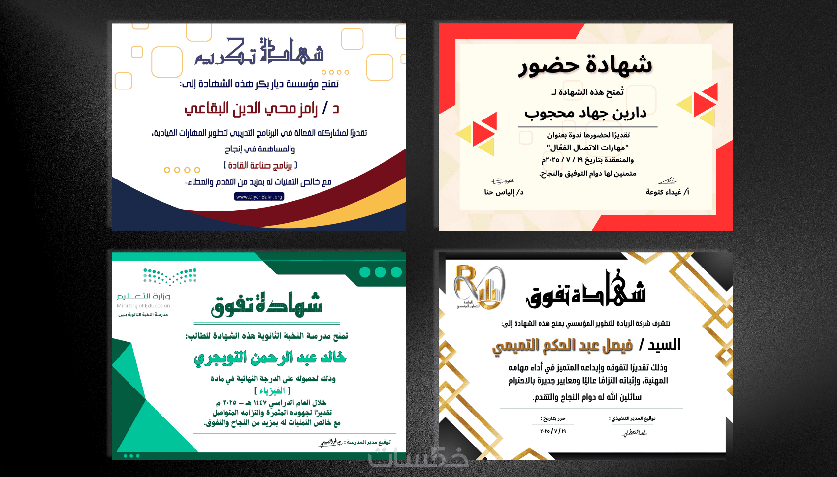 أقدم لك شهادات تقدير مميزة احترافية تناسب جميع المناسبات