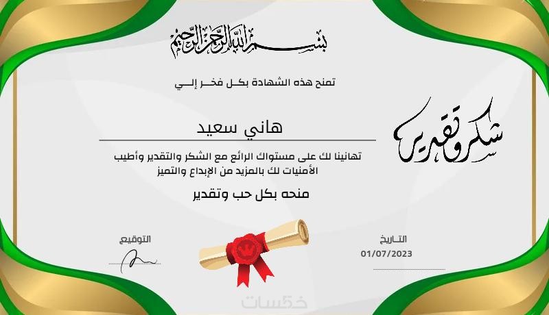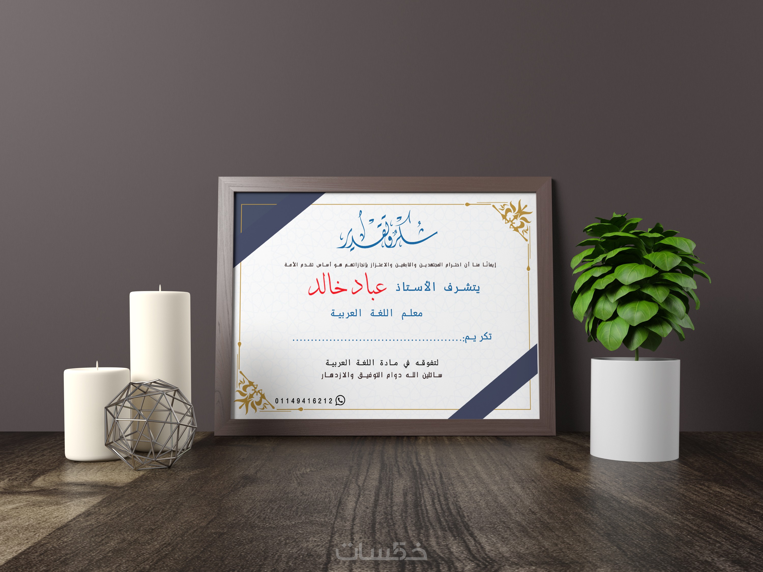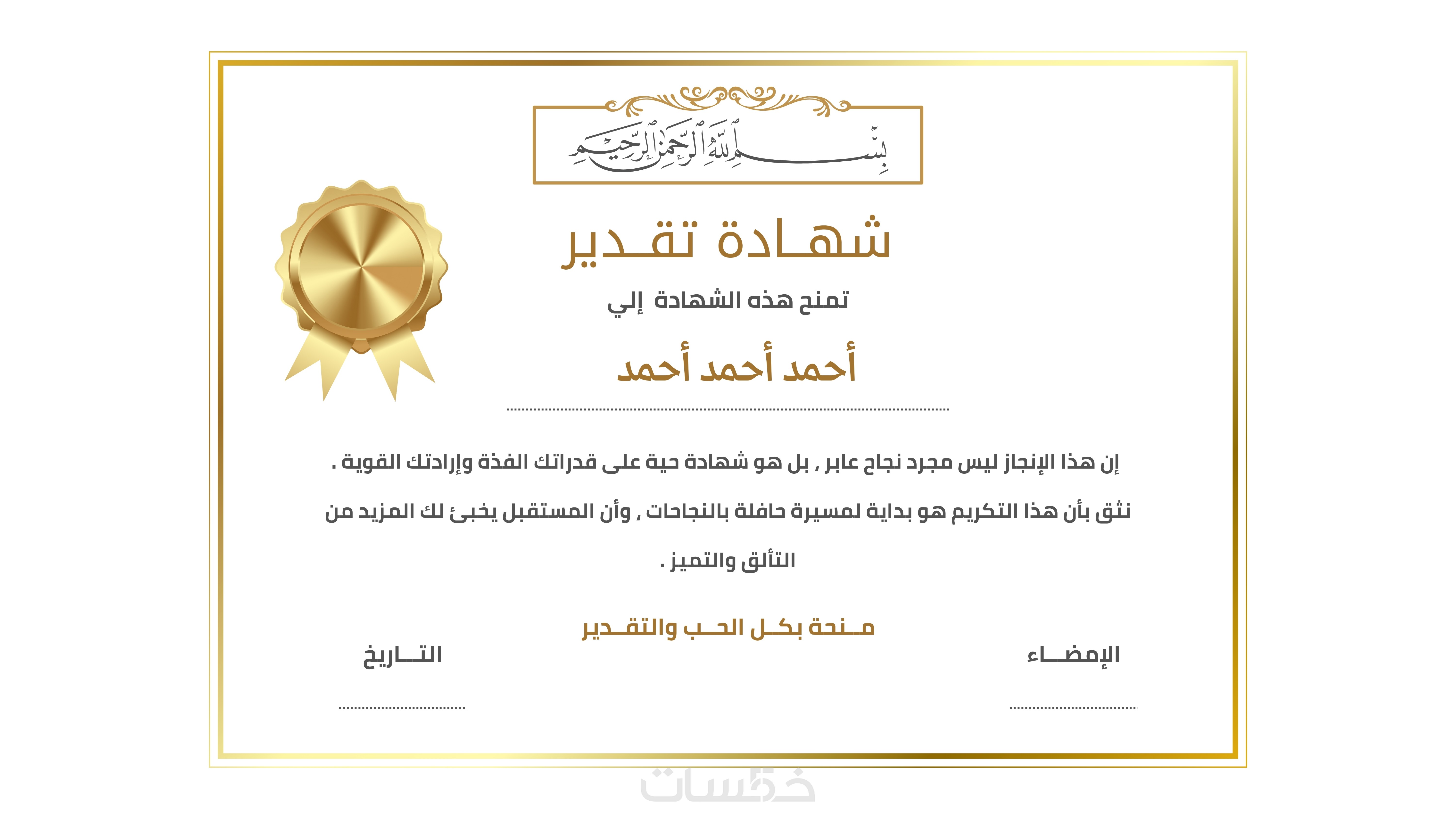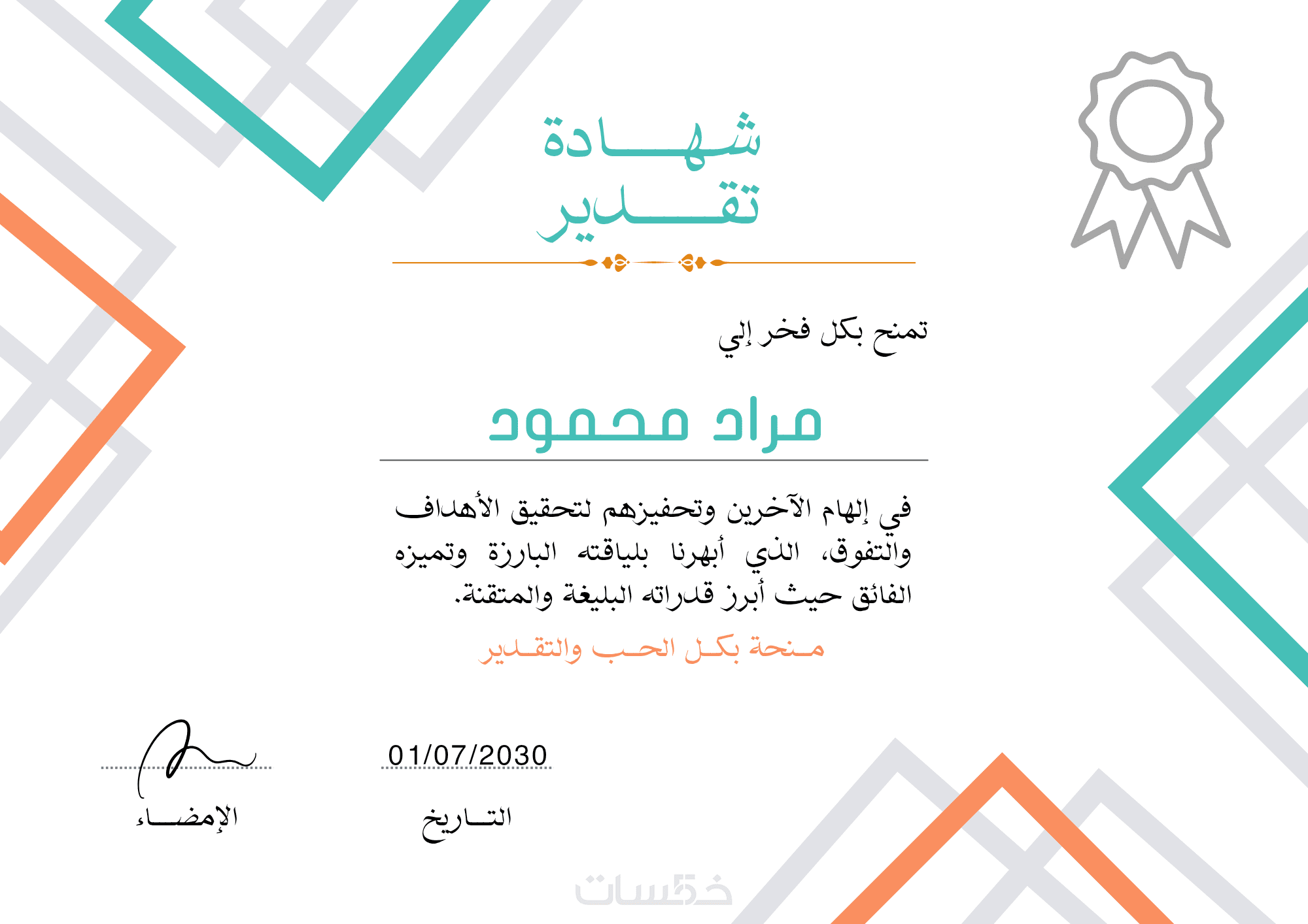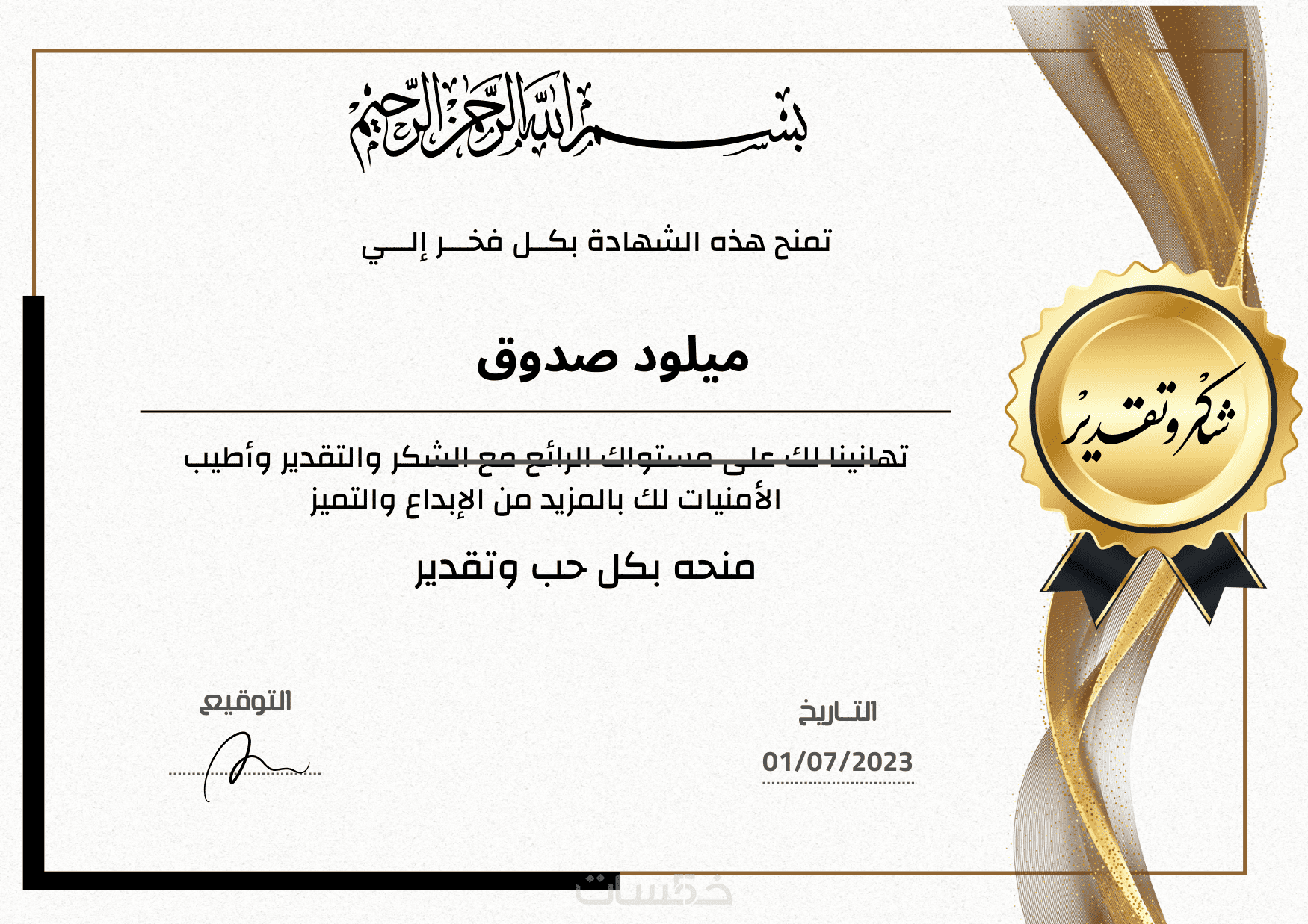 أقدم لك شهادات تقدير مميزة احترافية تناسب جميع المناسبات