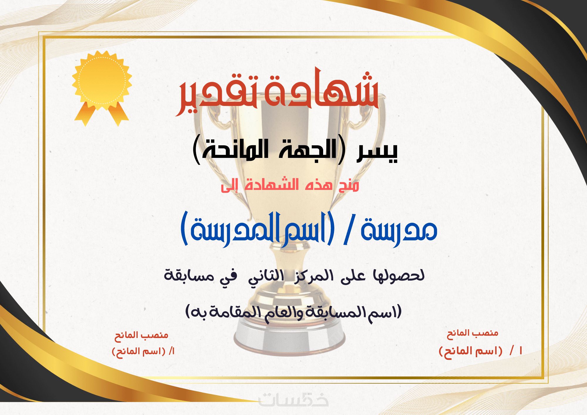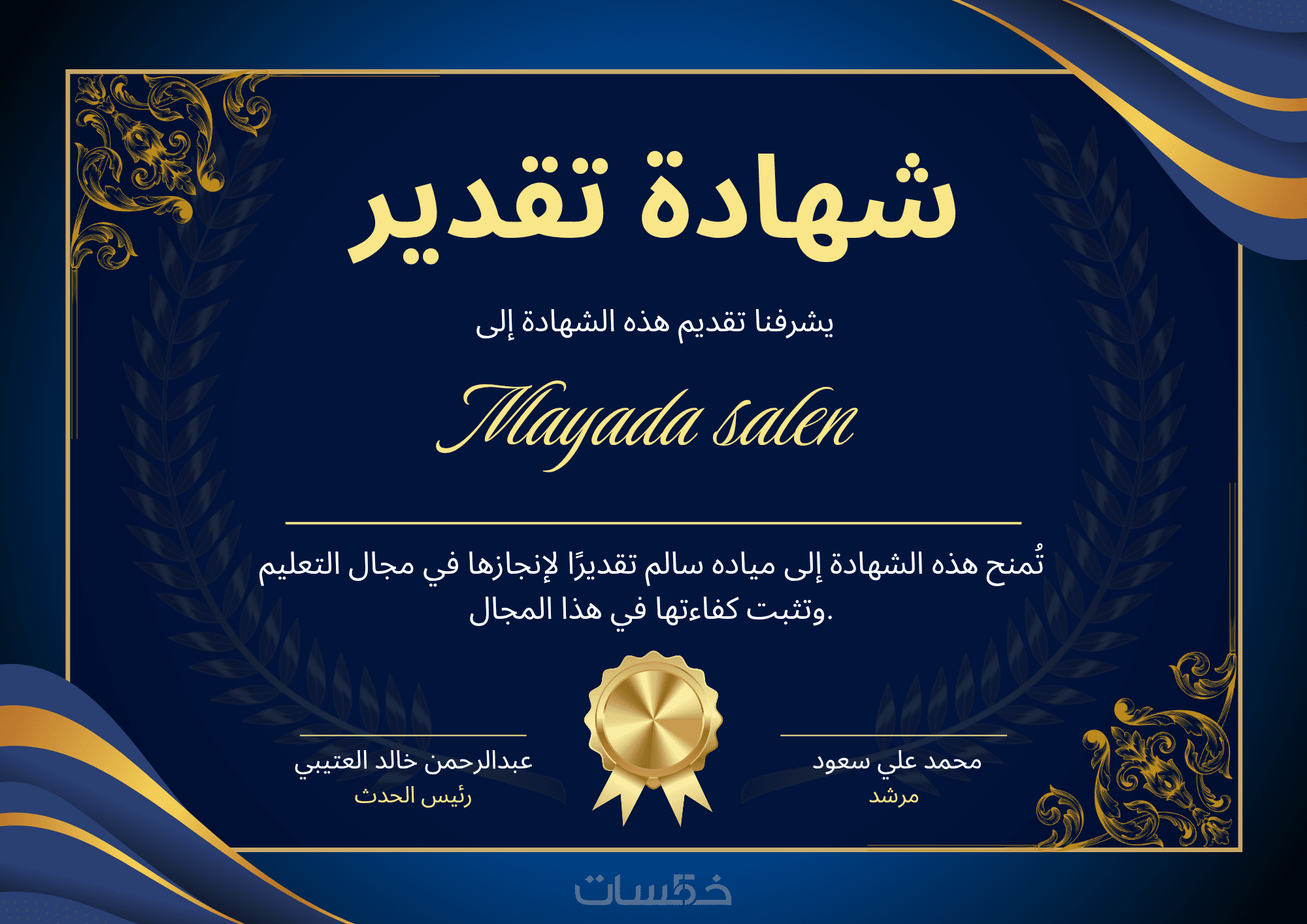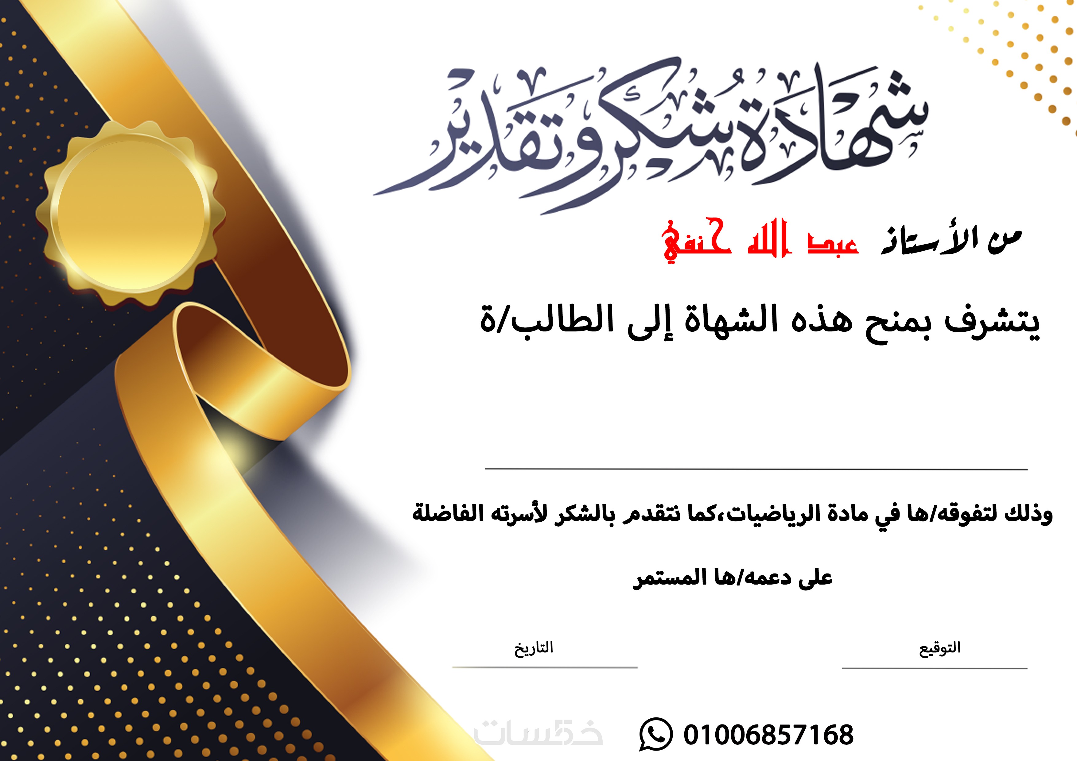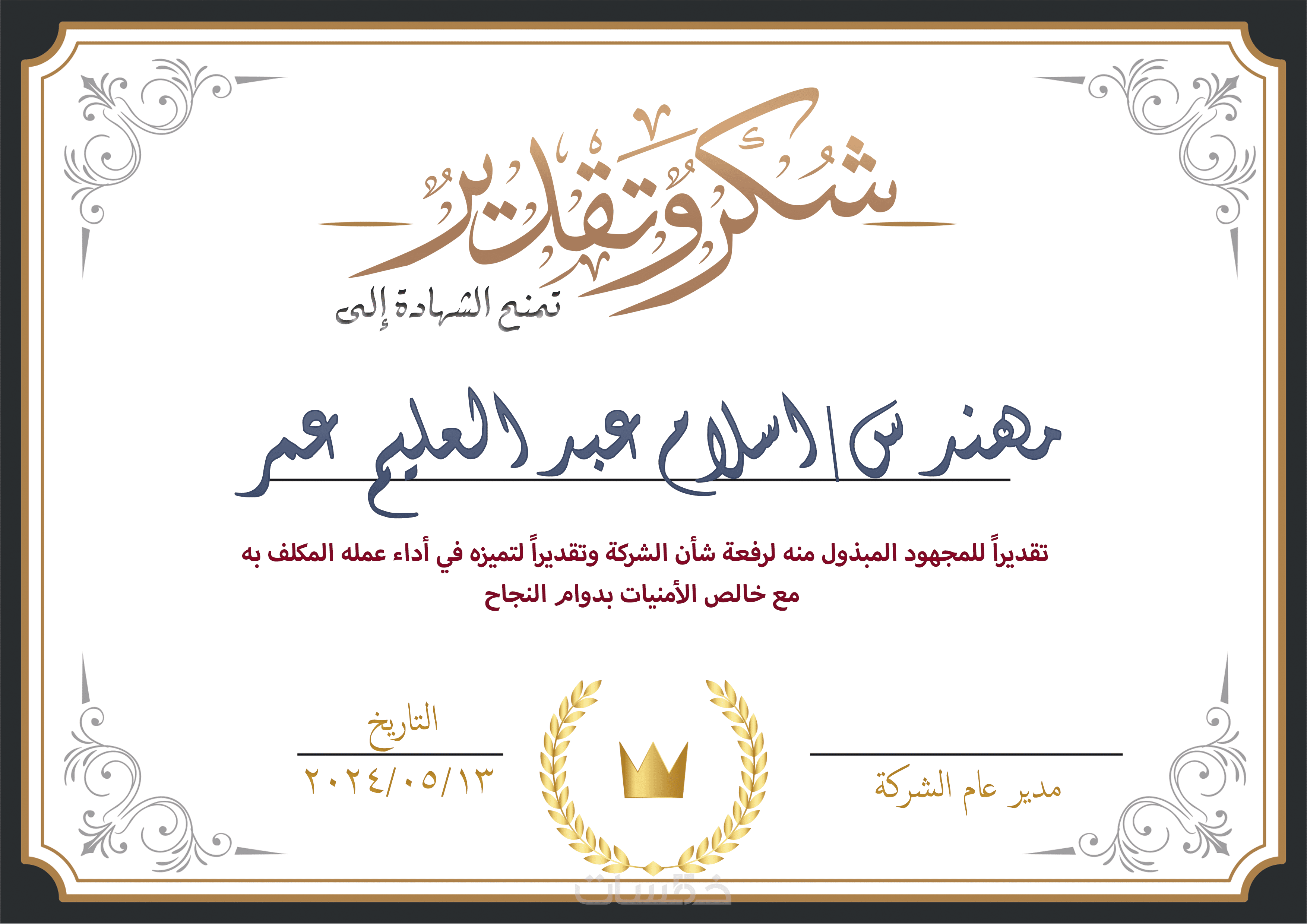 أقدم لك شهادات تقدير مميزة احترافية تناسب جميع المناسبات