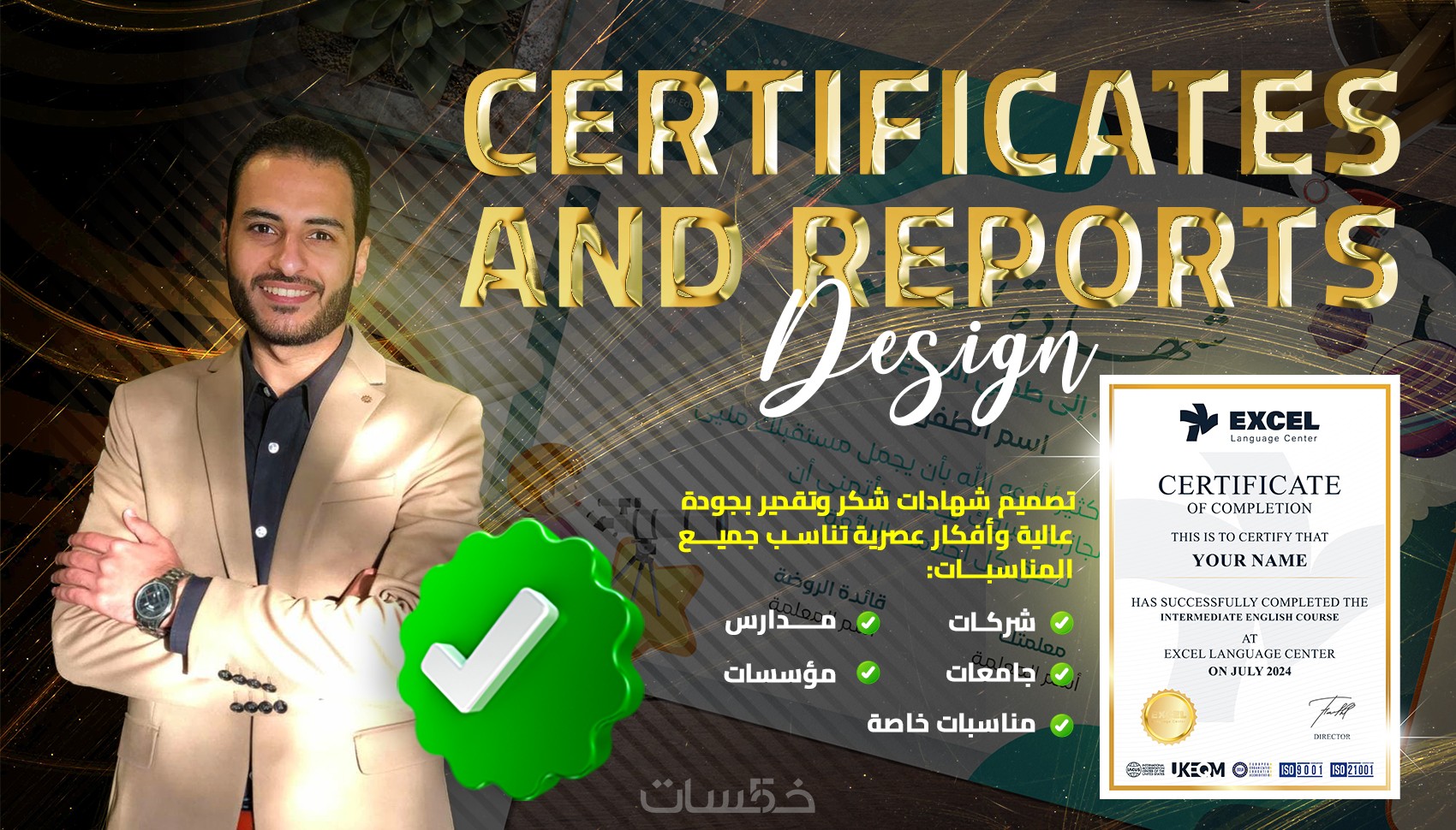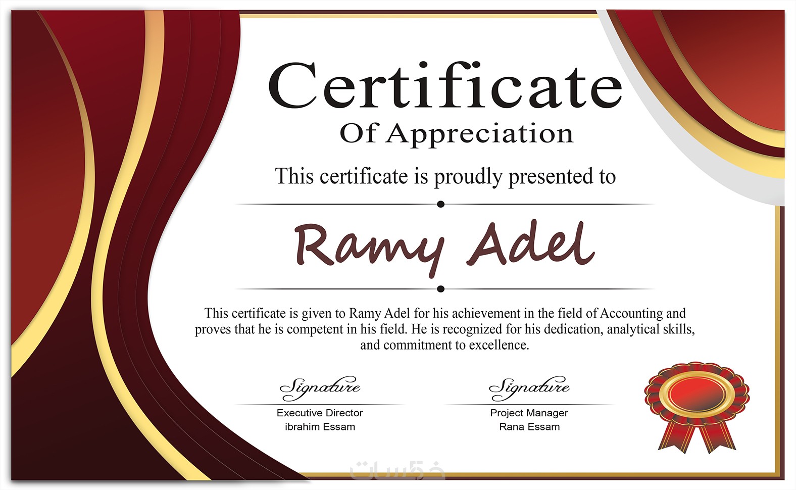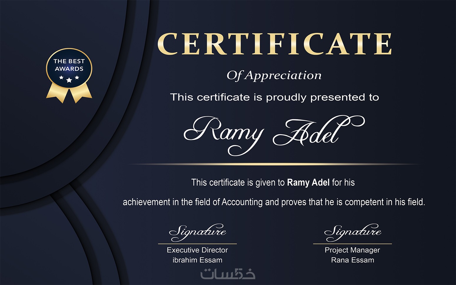 استطيع عمل شهادات تقدير احترافيه باللغة العربية و الانجليزية