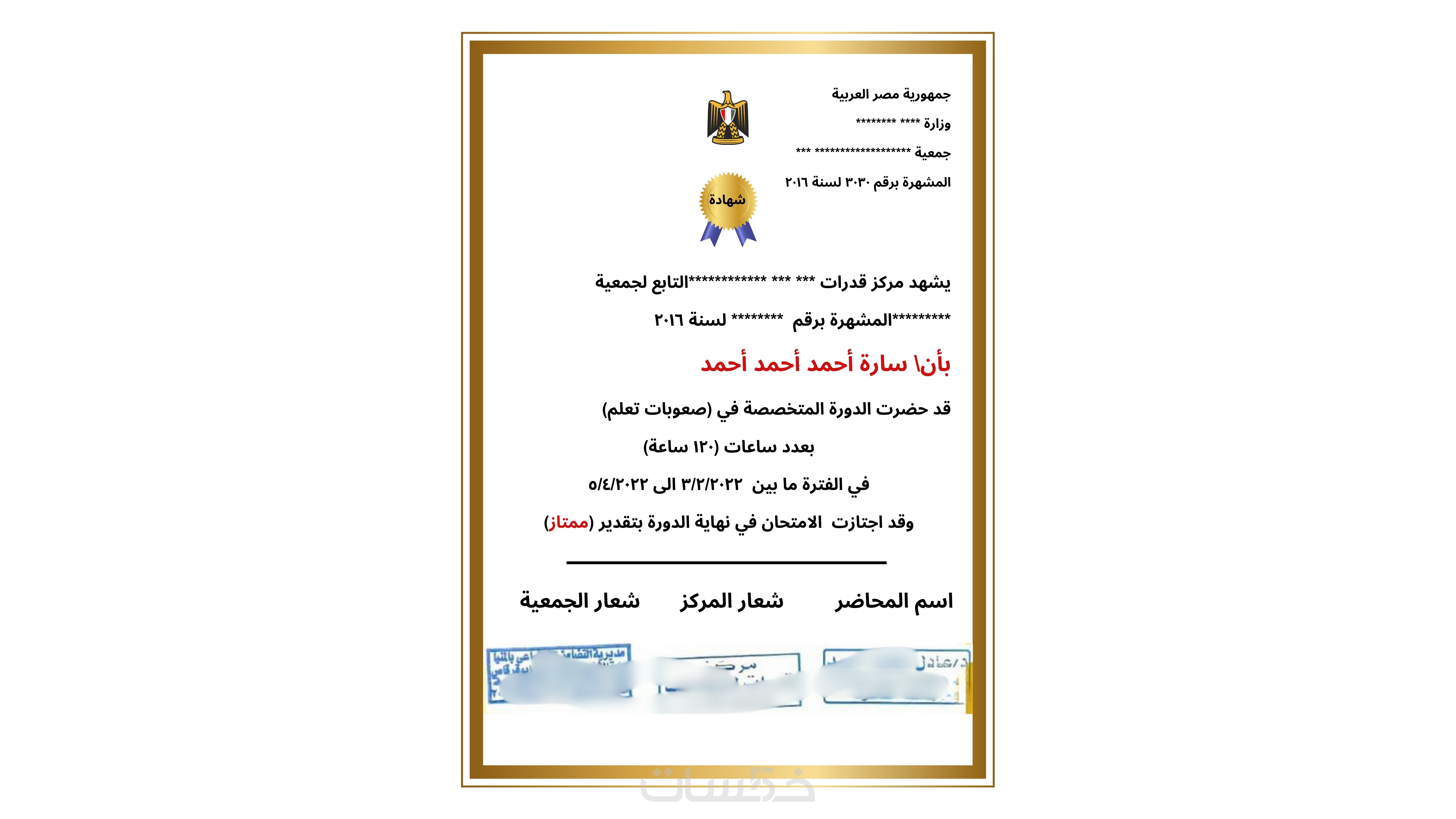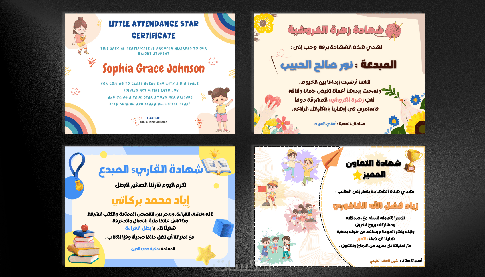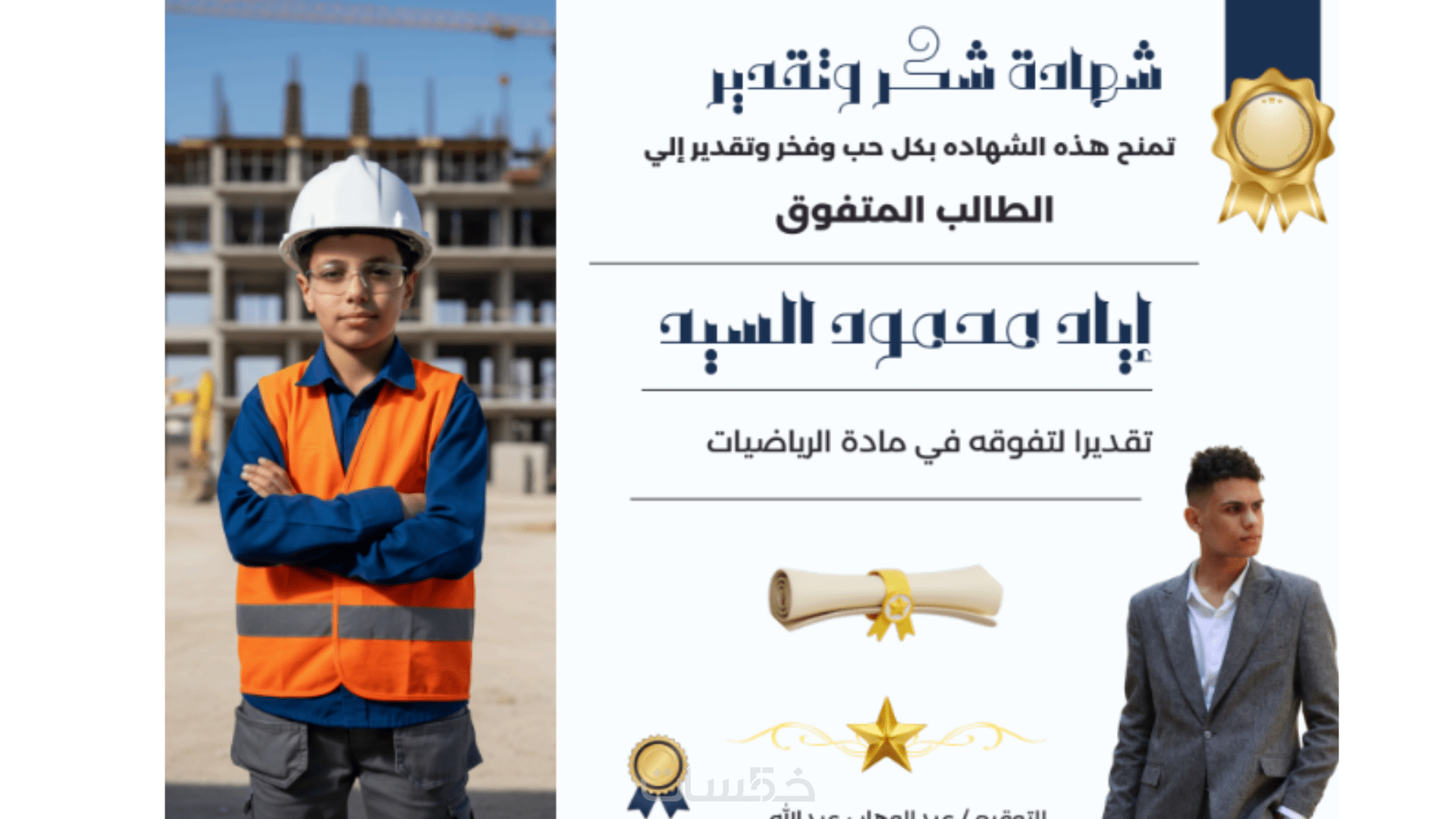 استطيع عمل شهادات تقدير احترافيه باللغة العربية و الانجليزية