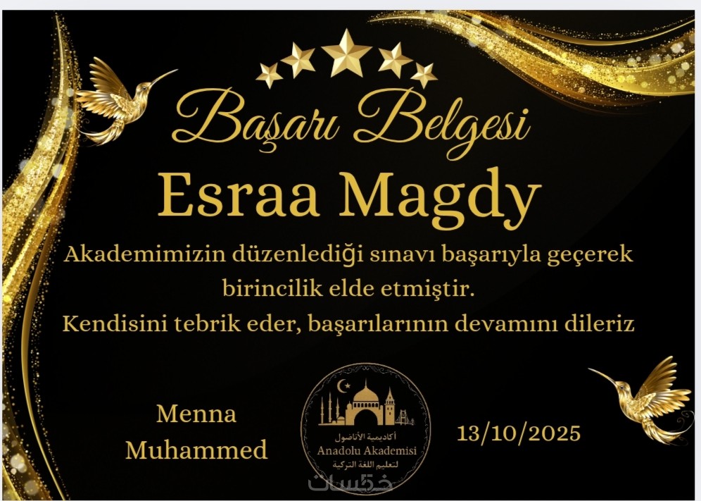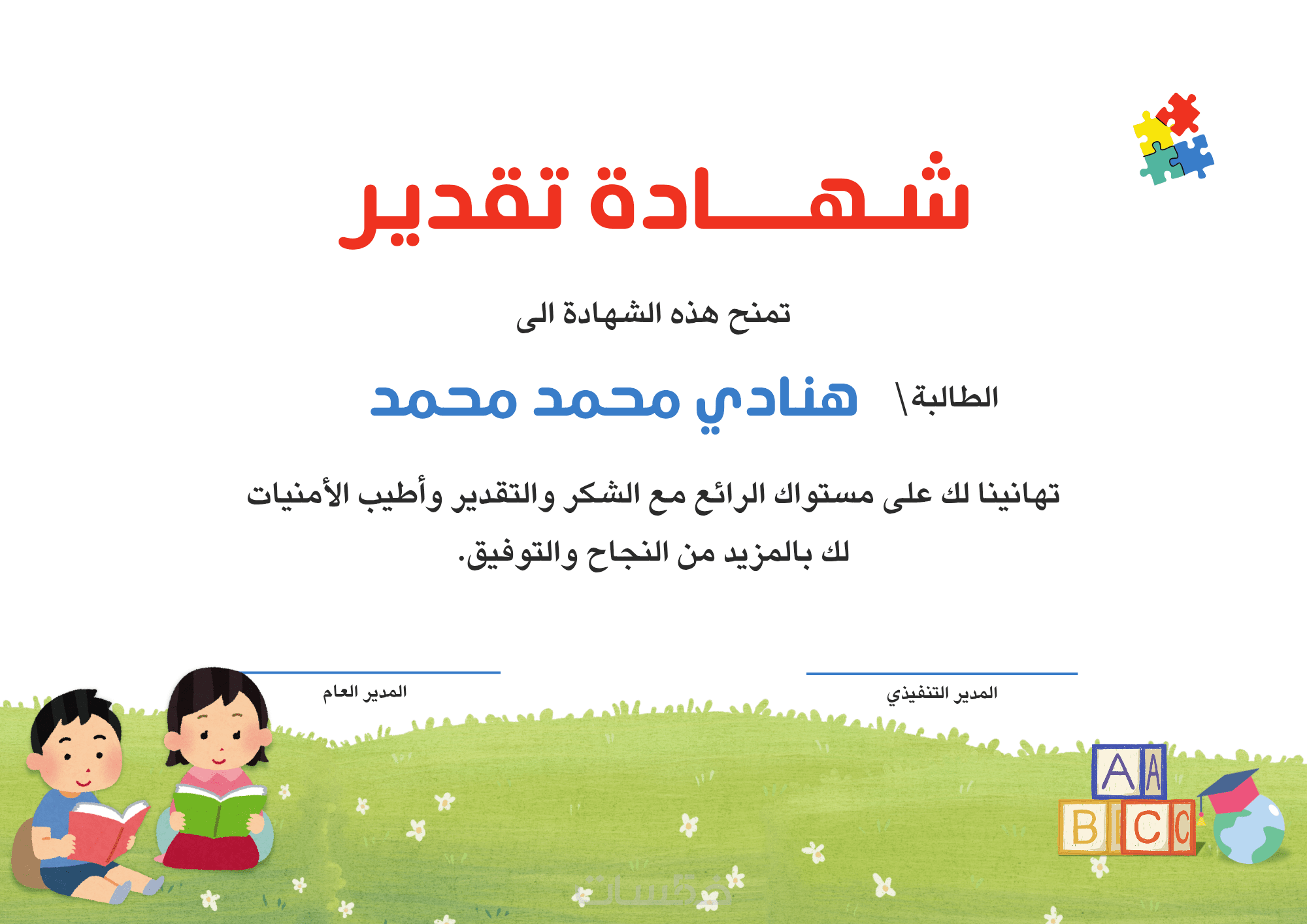 سأصمم لك شهادة تقدير بالشكل والألوان التى تريدها