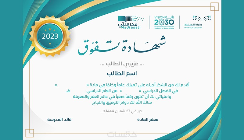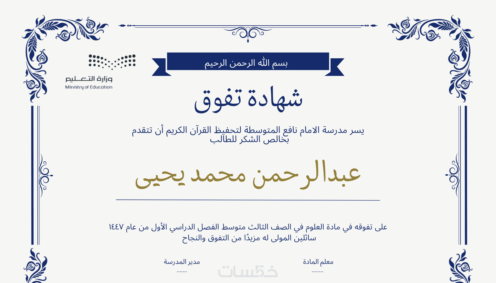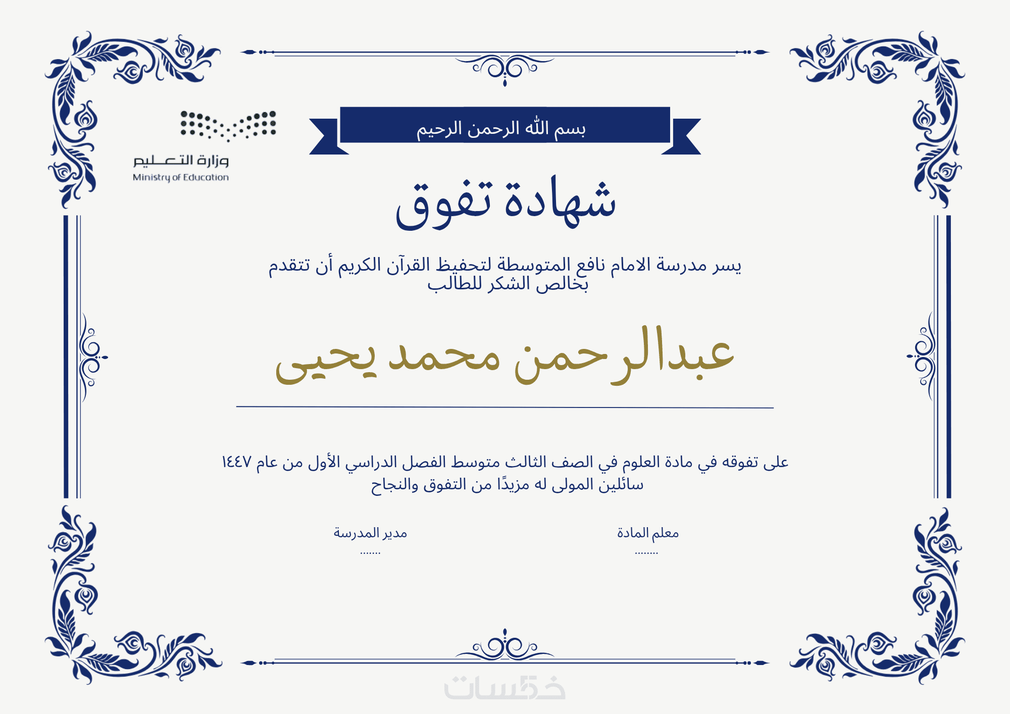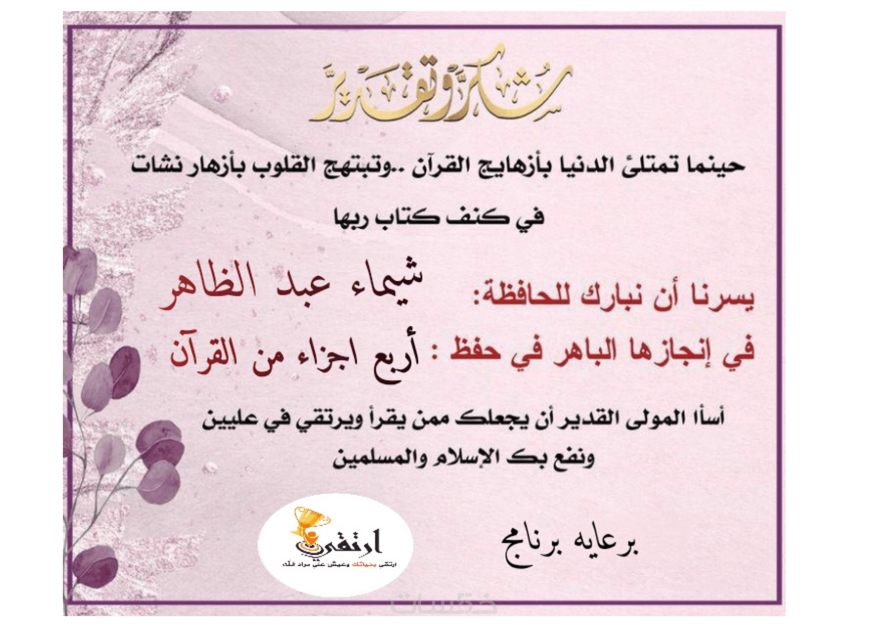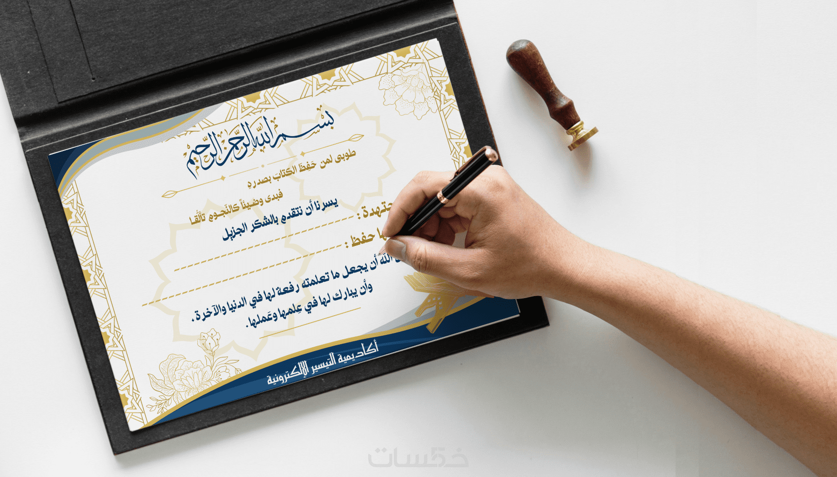 تصميم شهادات التقدير لمعلمين ومعلمات القران الكريم لطلابهم