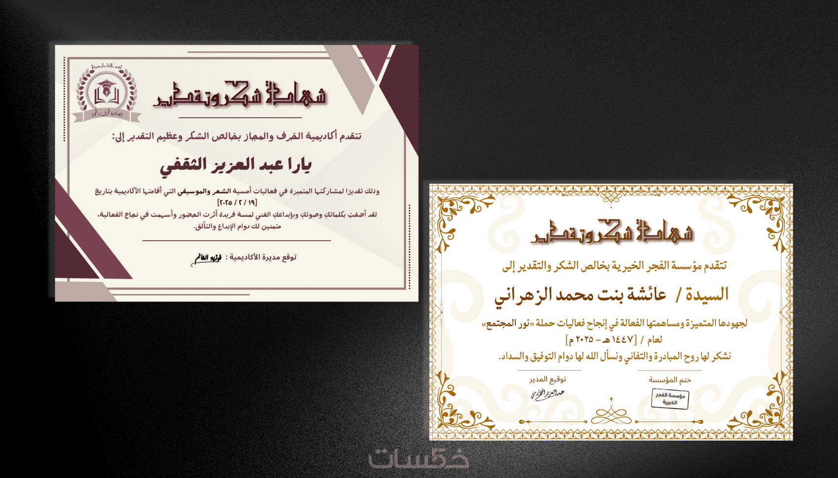 تصميم شهادات شكر وتقدير باحترافية عالية