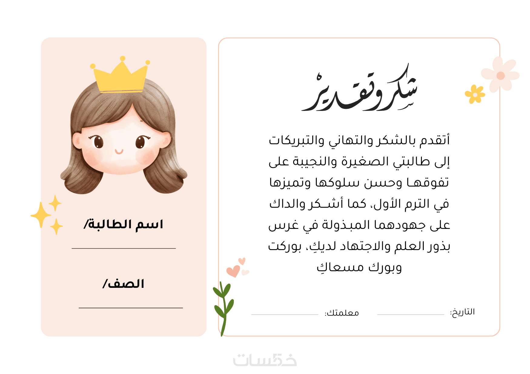 خطوة بسيطة وأثر عميق شهادة شكر تقدّر جهد الطالب وتشجعه