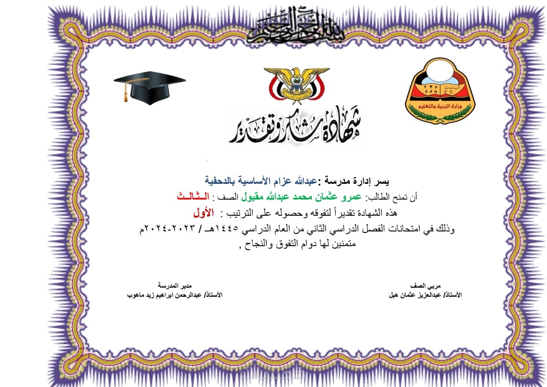 تصميم شهادة تقدير وشهادات طلاب بجوده عاليه جدا