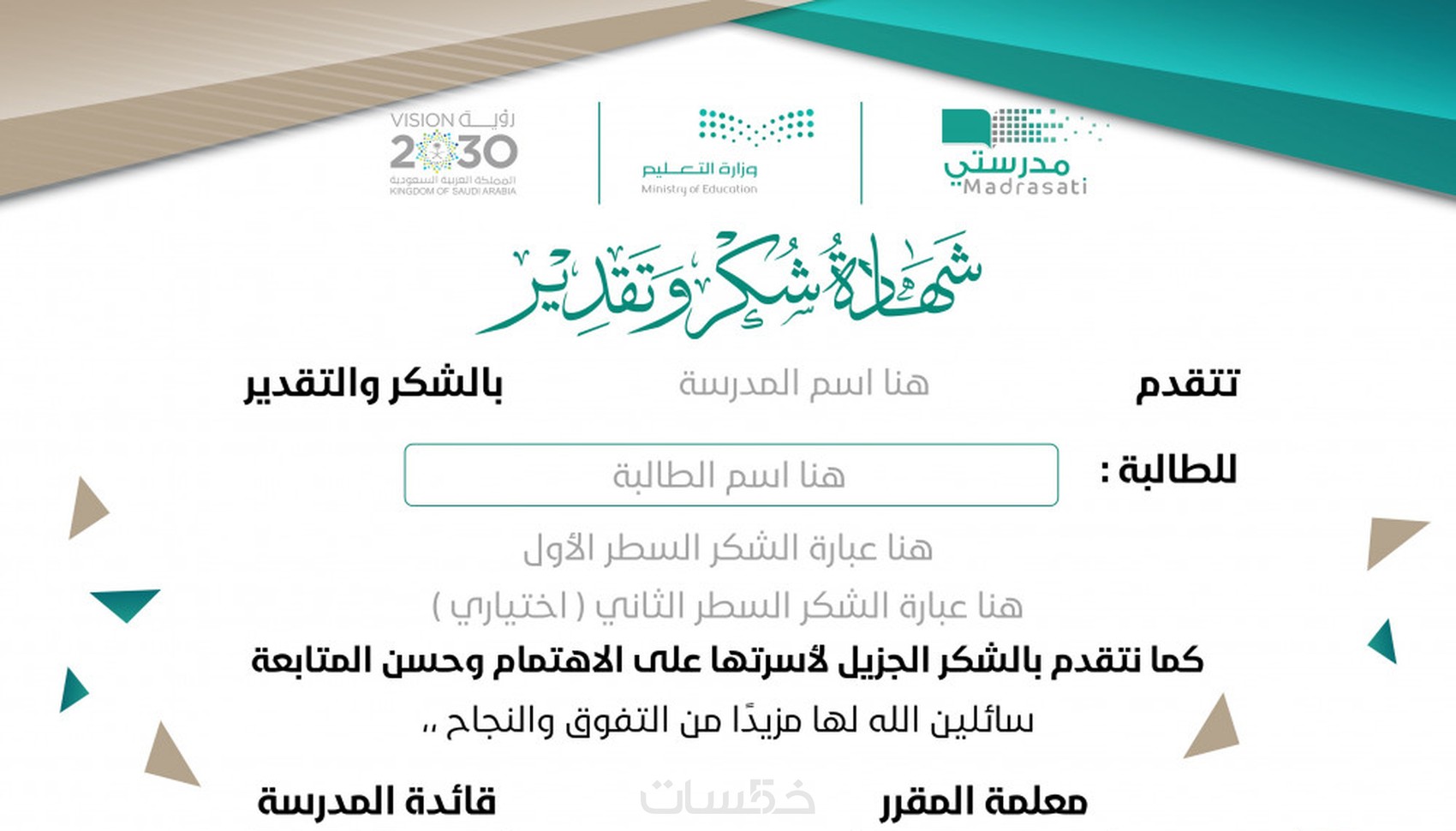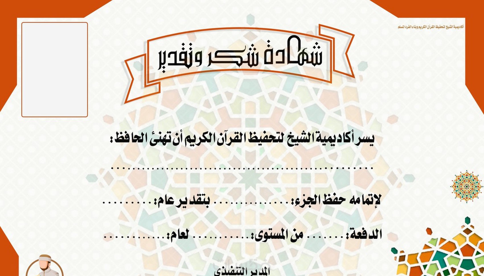 اقوم بكتابة جميع انواع الشهادات ( شهادة تفوق - شهادة تقديـر - شهادة مشـاركة - شهادة تدريـب - شهادة تطــوع - شهادة مدرسية - شهادة حفظ القران ) او أي نوع من الشهادات