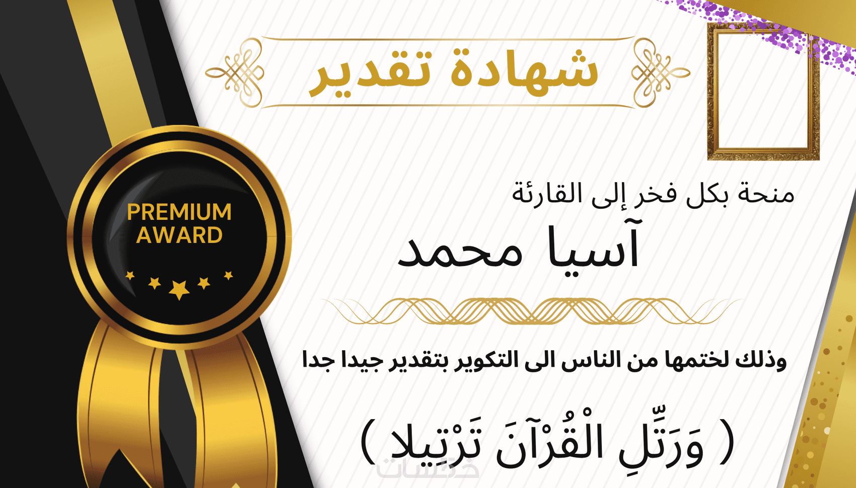 يمكن إضافة صورة شخصيه لصاحب شهادة التقدير والتاريخ و٥ من التعديلات واكثر