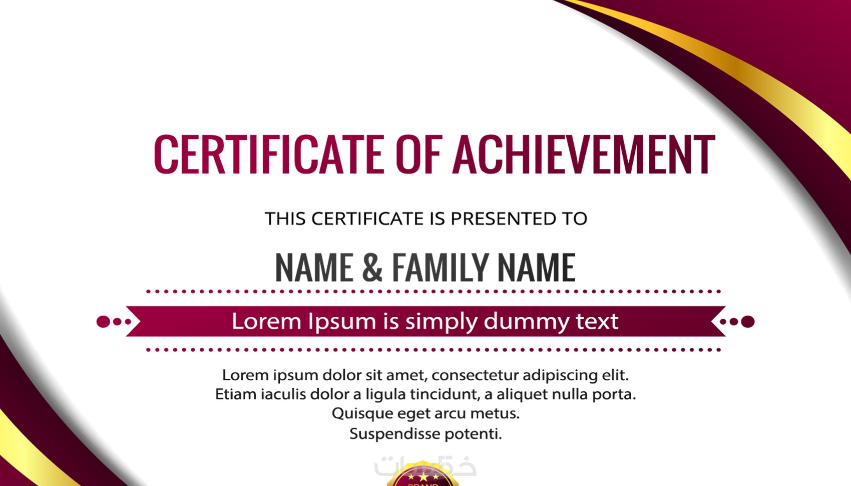 مرحبا بكم في خدمتي " تصميم شهادات باللغتين العربية والانجليزية بكل احترافية وجودة عالية"
