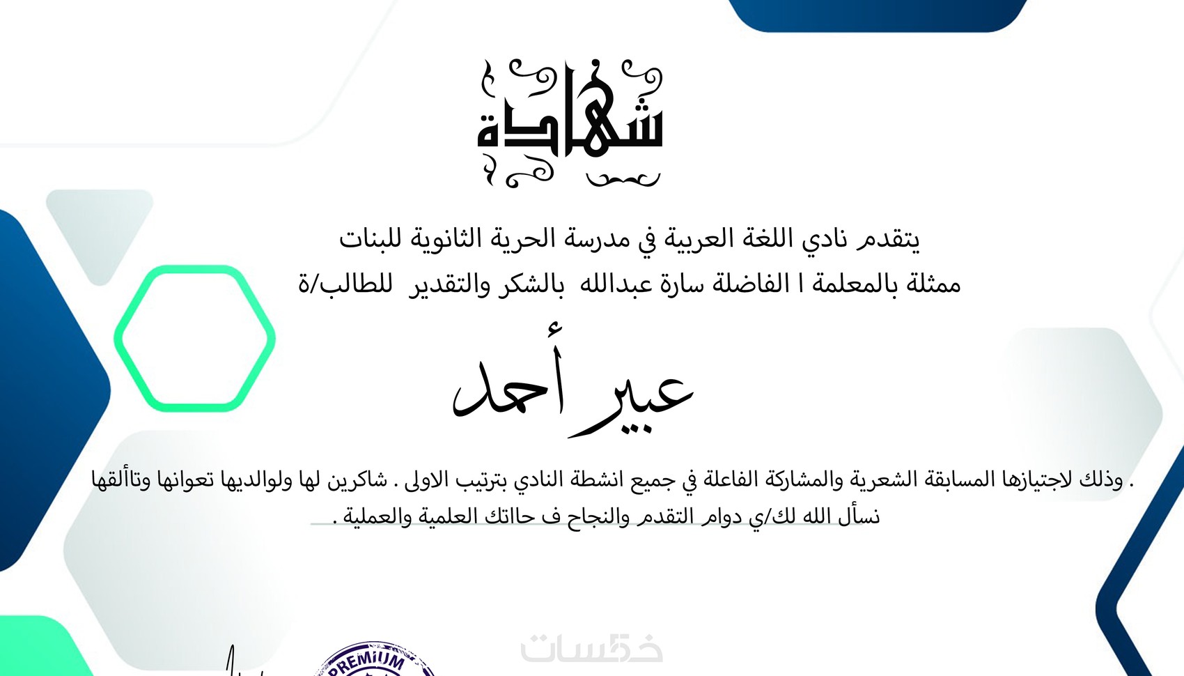 - تصميم شهادة بالحجم المطلوب باللغة العربية