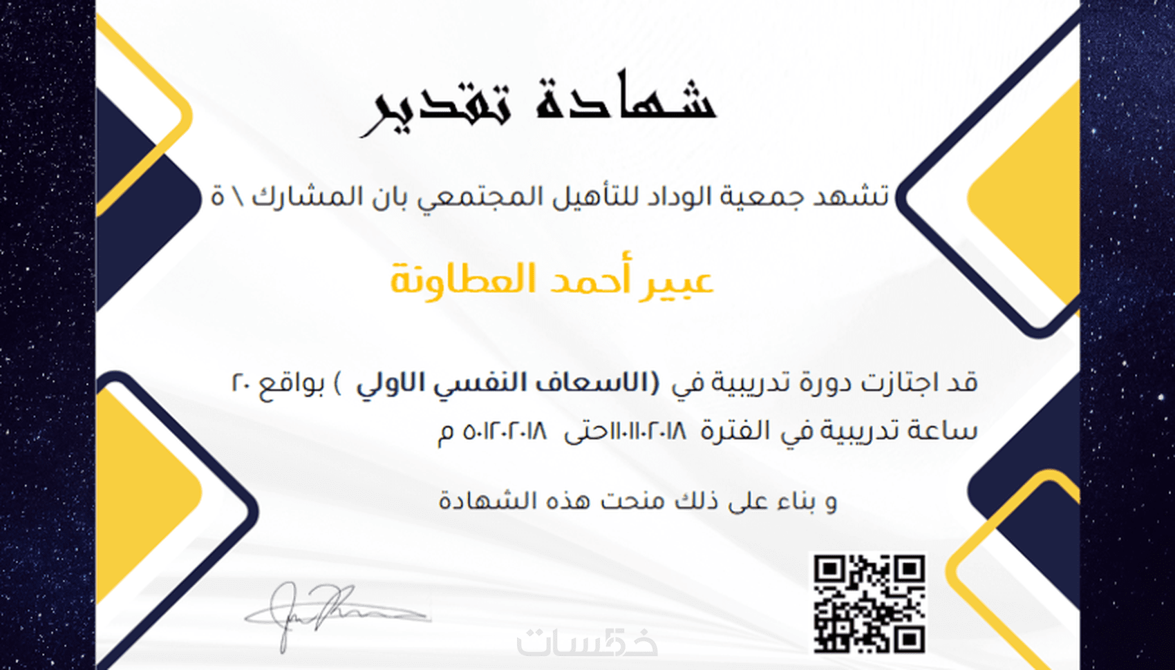 ـ هذه الخدمة توفر تصميم جميع أنواع الشهادات.