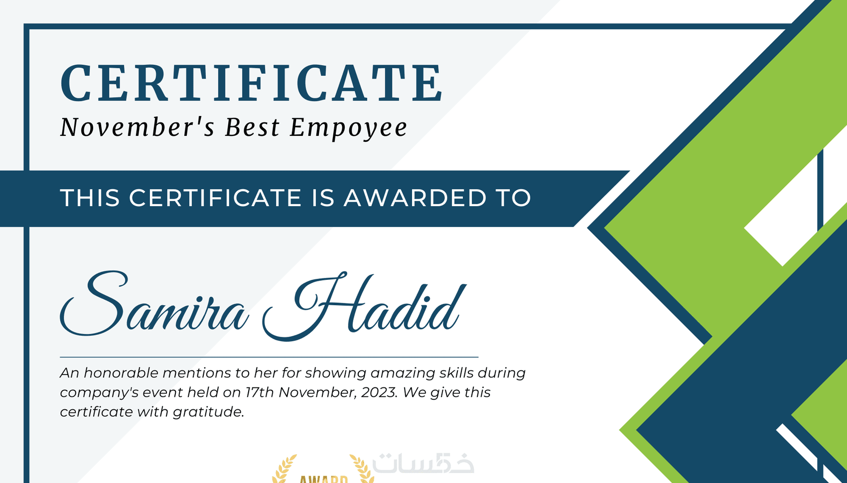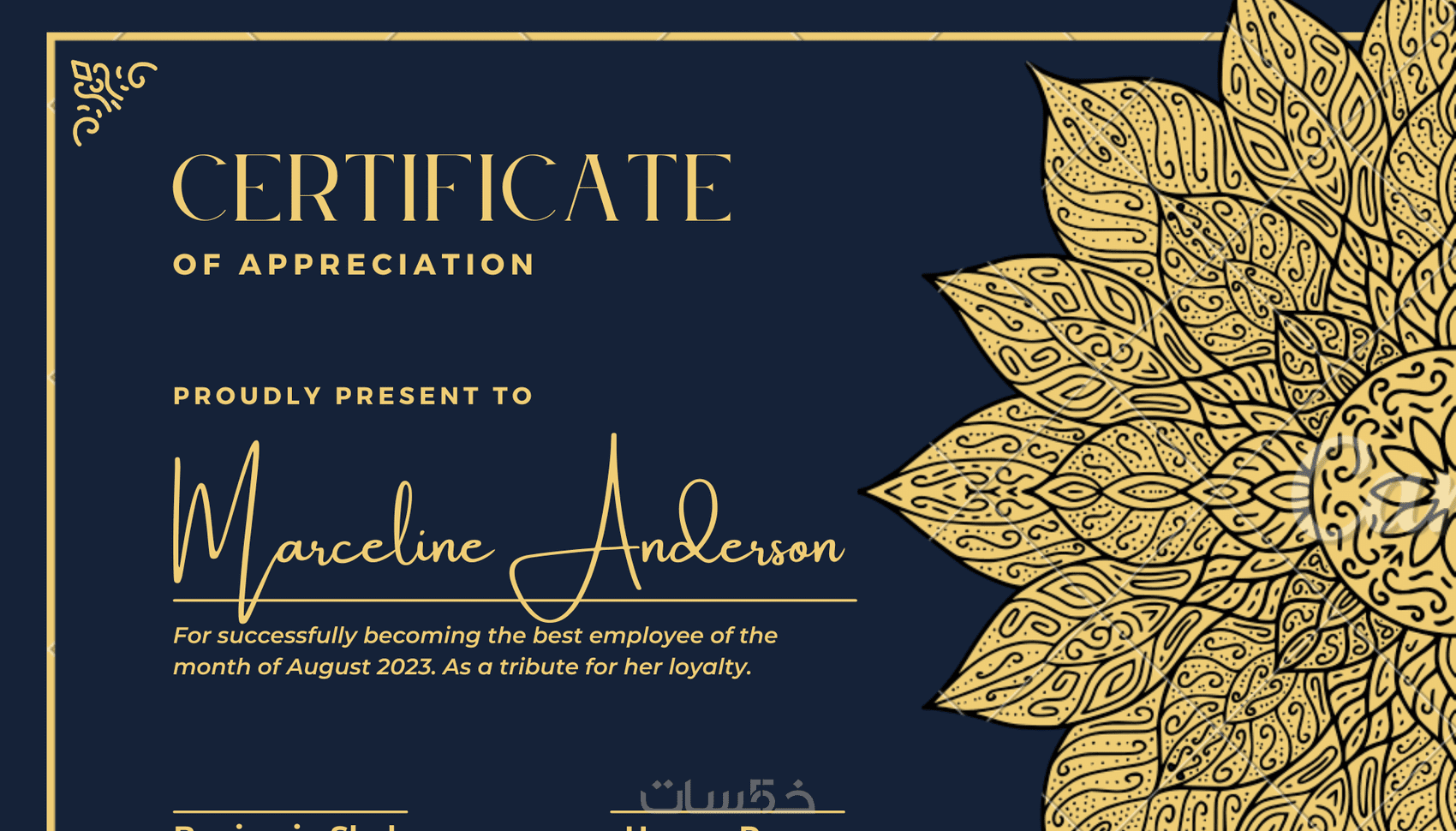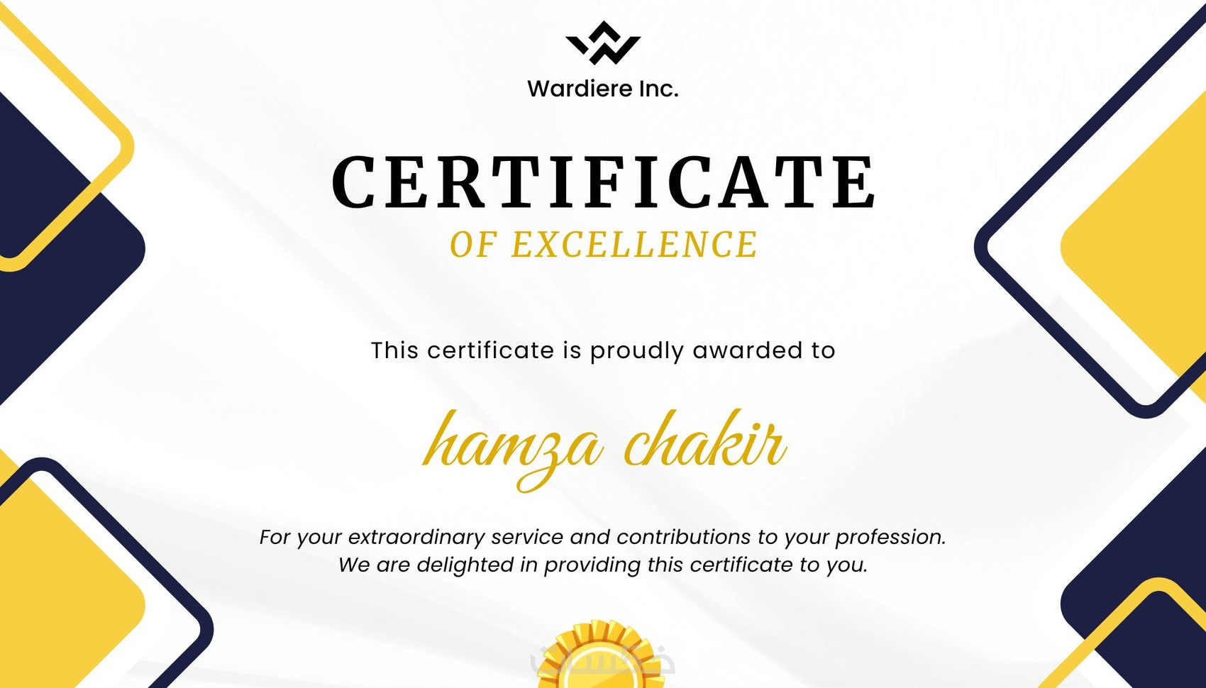 سأقوم بتصميم شهادة تقدير او شهادة تميز احترافية لك او لموظفينك كما يمكنني التعديل علي اي شهادة تقدير لديك