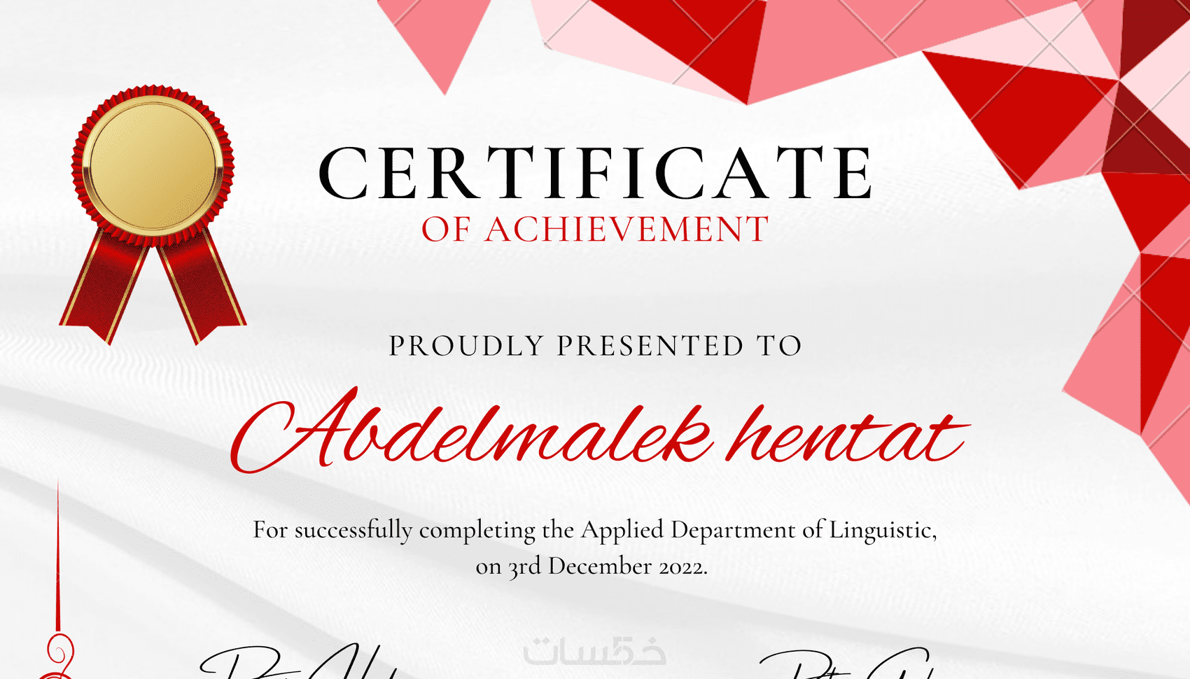 - تصميم عدد 2 شهادة باللغة العربية او الإنجليزية.