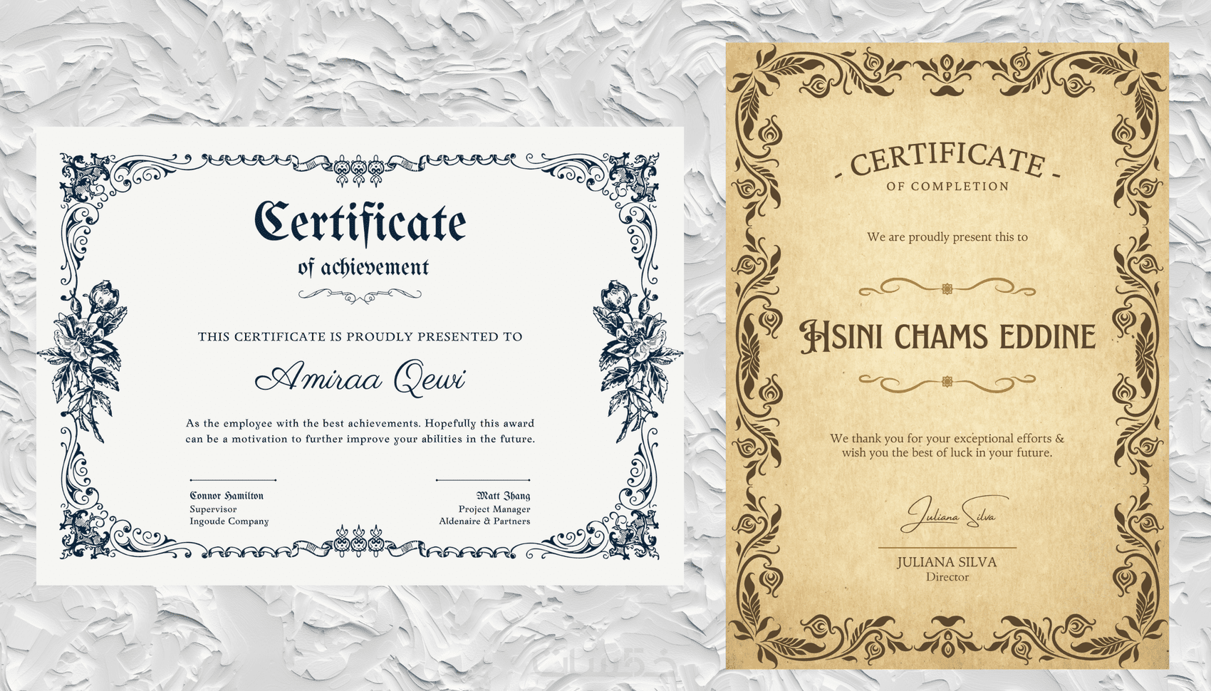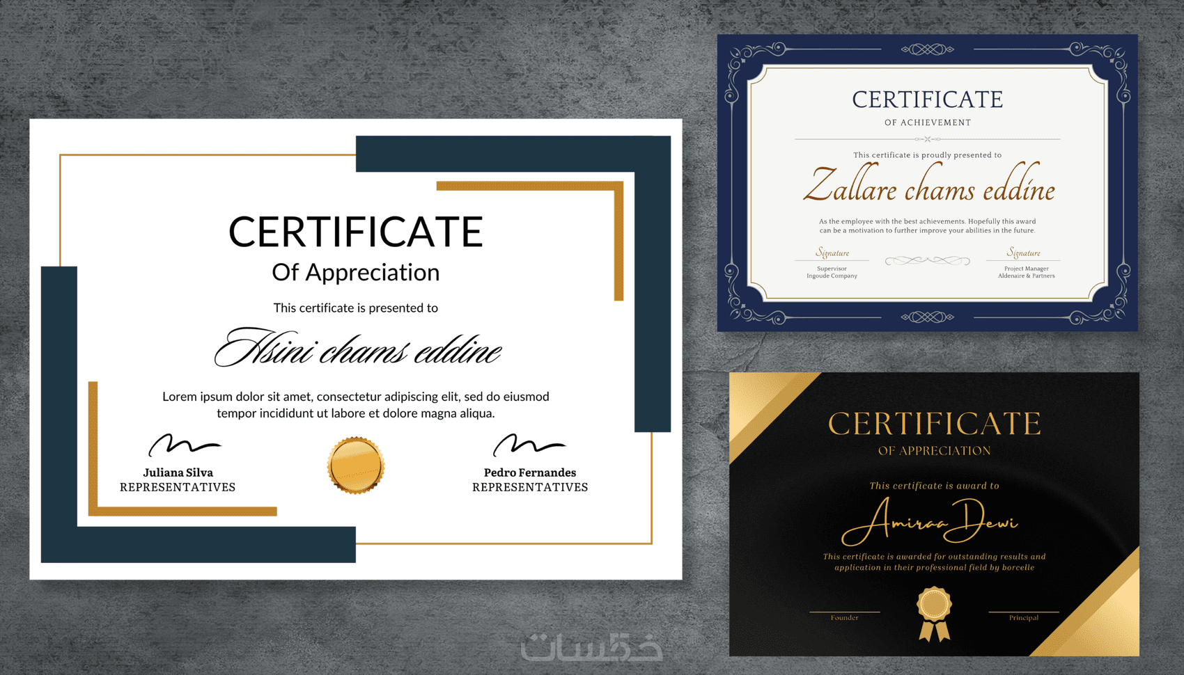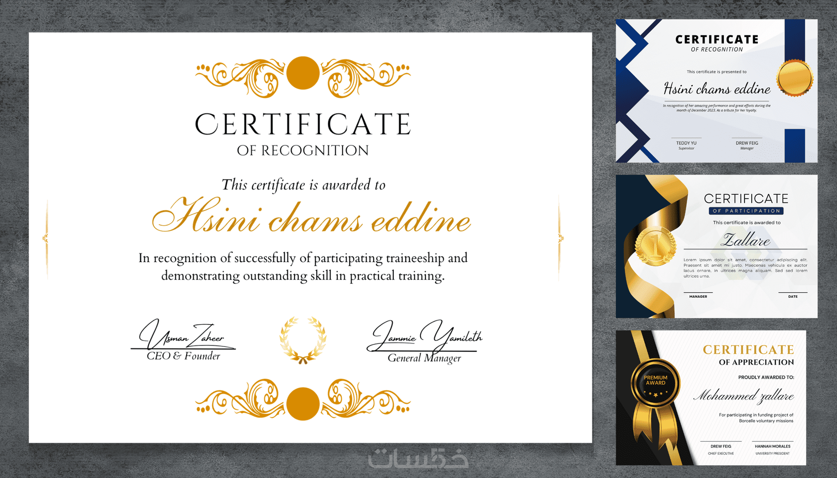 شهادة مهنية ، شهادة عمل ، شهادة جائزة ، شهادة هدية ، شهادة تقدير ، شهادة إتمام ، شهادة إنجاز ،