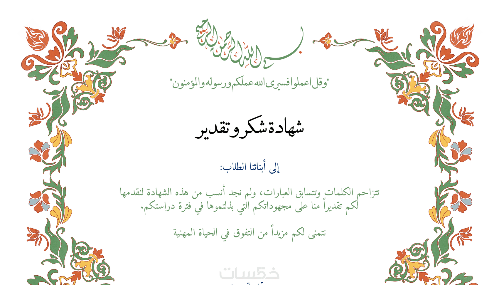 شهادات الشكر والتقدير.